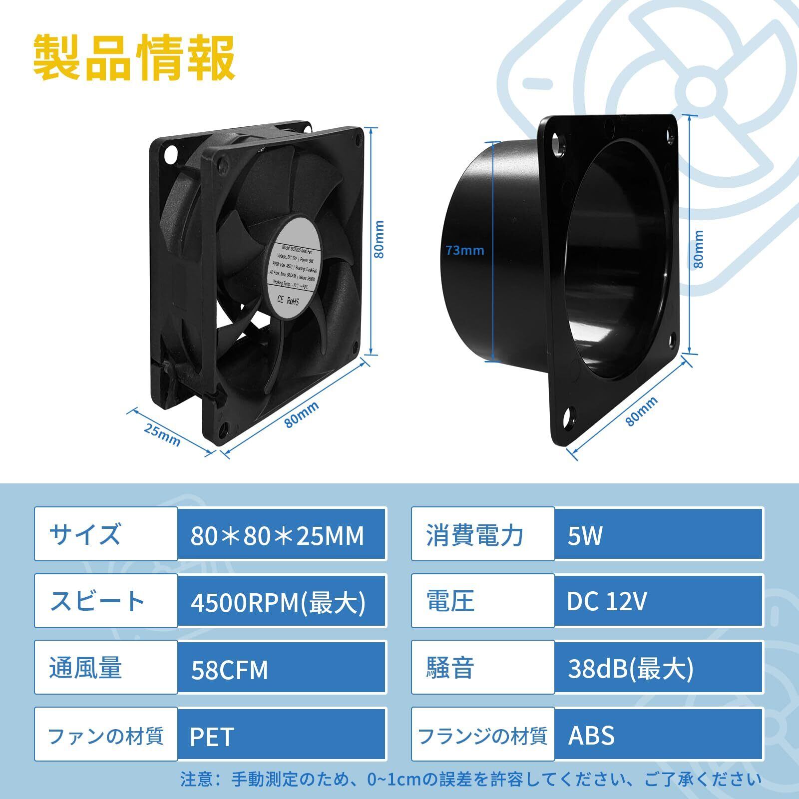 【2025全新型】Sidvkut 軸流ファン 4500rpm 無段階調速スイッチ付き ダクト用換気扇 80mm*25mm厚 小型 ケースファン 塗装ブース用換気扇 冷却 ペットのトイレの通気用 金属網・フランジ付き ブラック | Bloomia