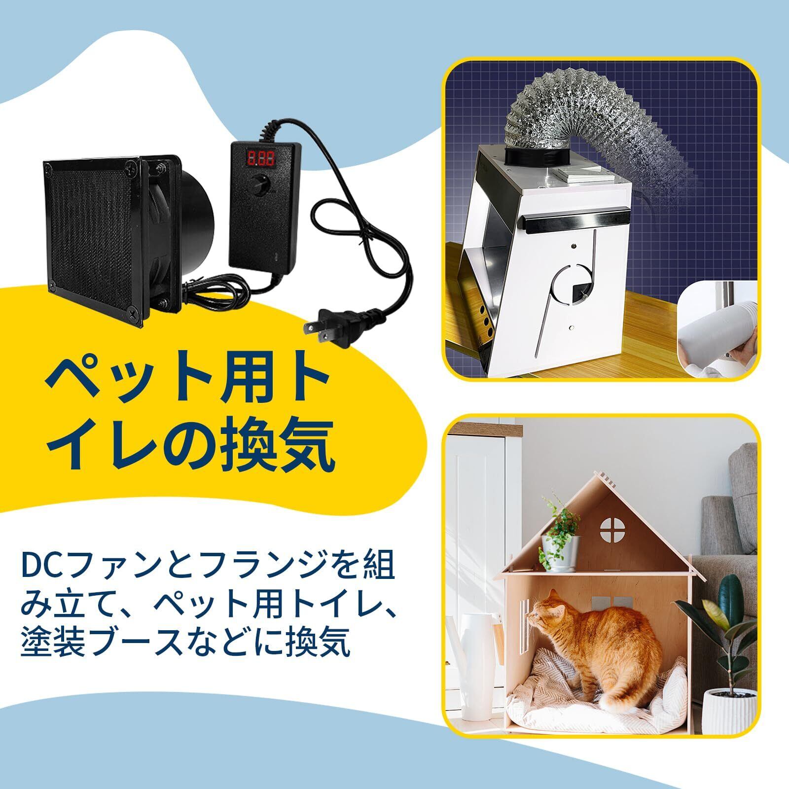 DCファン・塗装ブース/ペットのトイレの通気用:この製品の付属品には金属網とフランジがあります。ニーズに応じて、金属網やフランジの組み立てを行うと、組み立て方によって用途が異なります。DCファンと金属網を組み立てるときは、コンピュータケース、CPUラジエーター、乾燥機などの冷却に適しています。DCファンとフランジを組み立てるときは、ペットのトイレ、育成用テント、塗装ブースなどに設置して換気することができます。