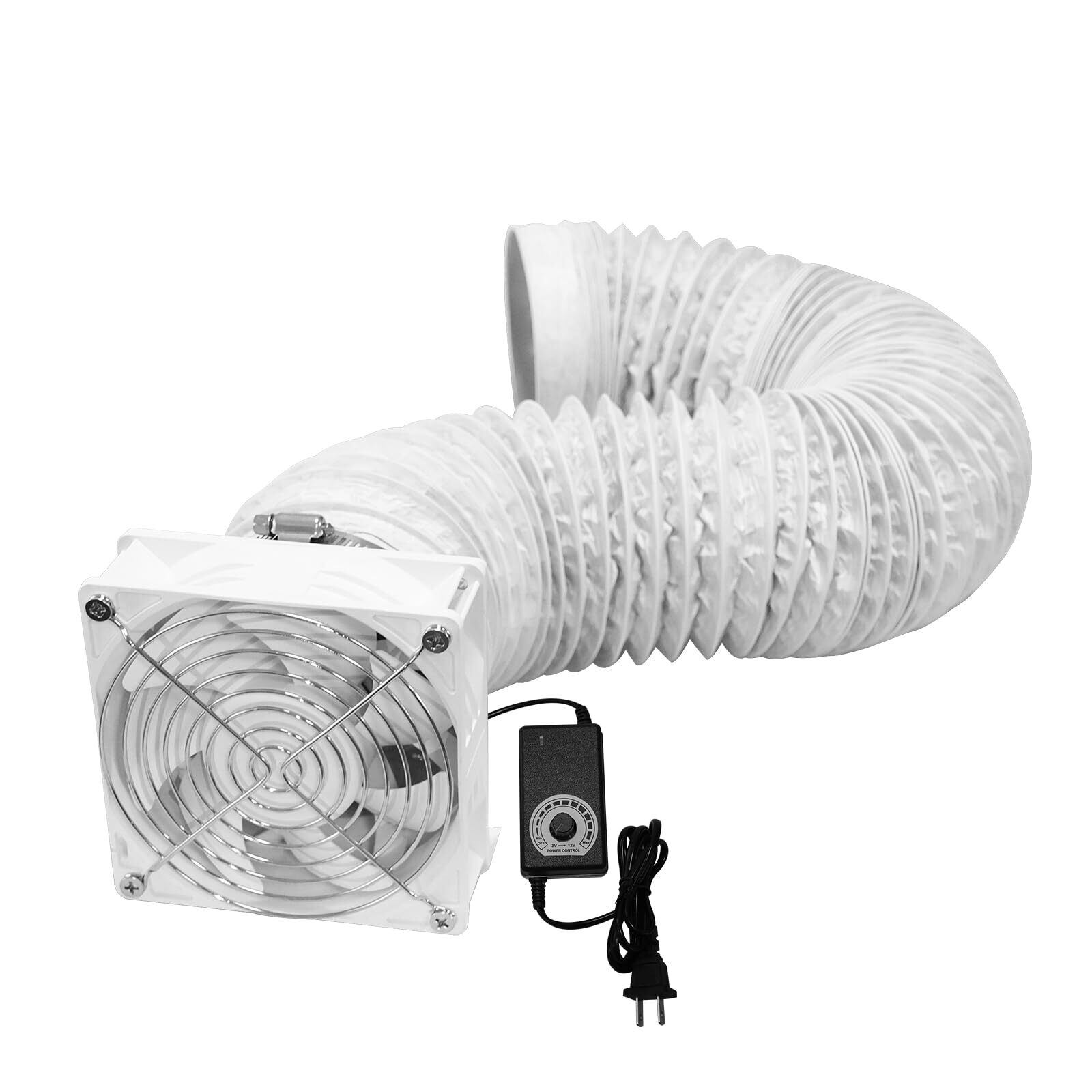 Sidvkut ダクト用換気扇 3000rpm 無段階調速スイッチ付き 軸流ファン 120mm 38mm厚 静音タイプ 塗装ブース用換気扇 DCファン PVCダクトホース付き ペットのトイレの通気用 栽培テントの排気用 ホワイト