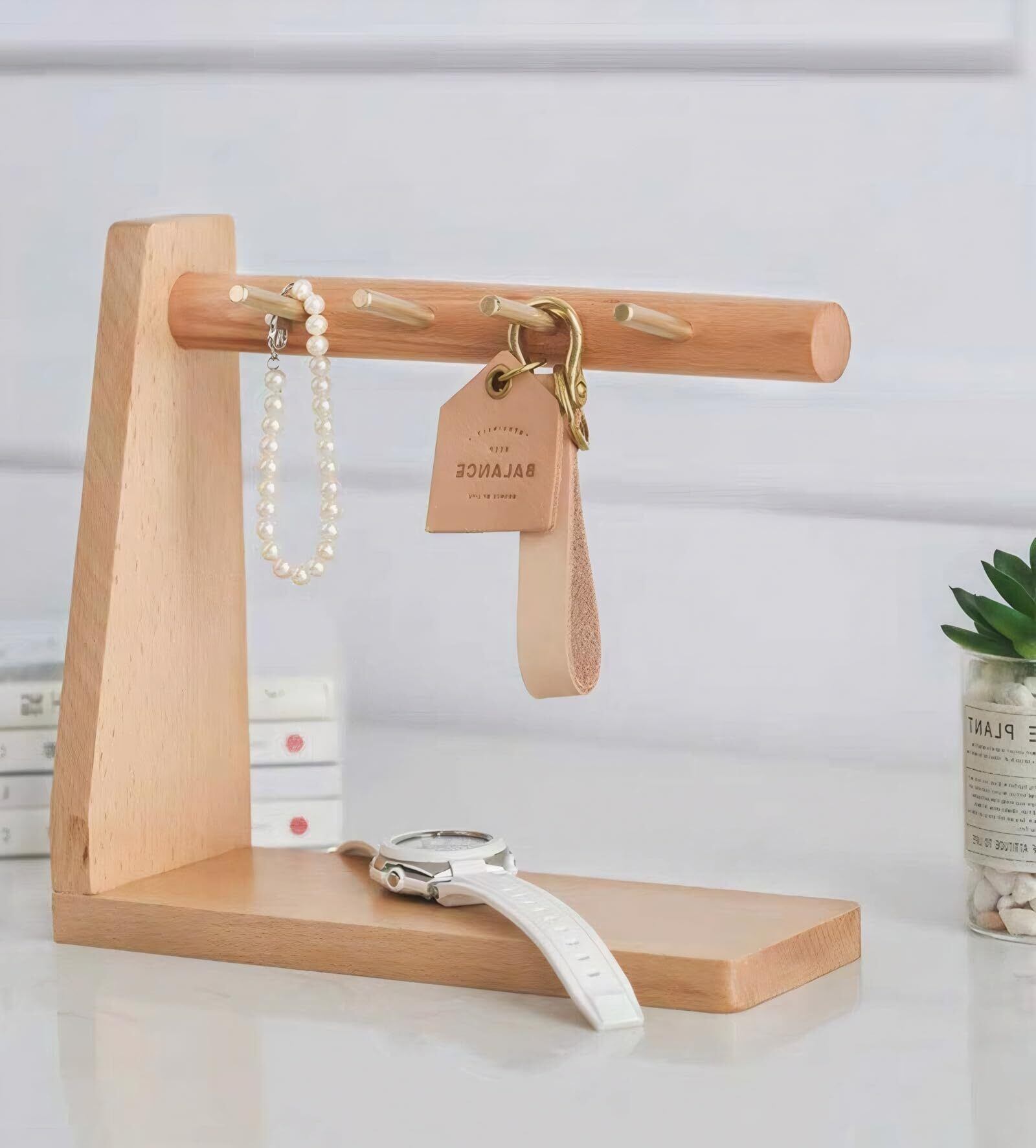 Sakulaya 鍵置き 玄関 アクセサリースタンド メガネスタンド 眼鏡収納 鍵ホルダー 木製 鍵収納 小物入れ キーフック 玄関収納 (ブナの木)
