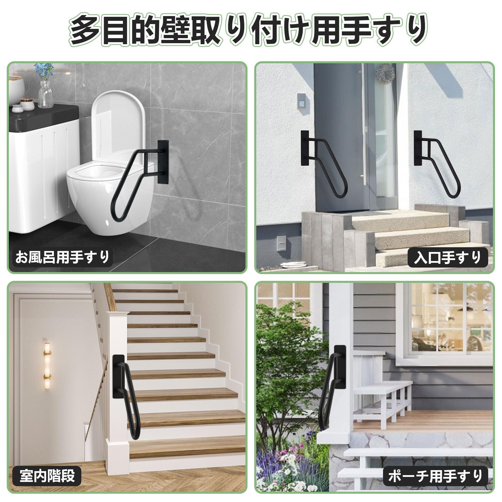 awliye 手すり屋外 壁取り付け用手すり 1-3ステップ 58cm 炭素鋼材 U字型階段 玄関 ノンスリップ 使いやすい45度の傾斜角度 高齢者用サポート 屋内 屋外 屋根 裏廊下 庭 ヴィラロフト ガレージ ポーチ用(ブラック) | Bloomia