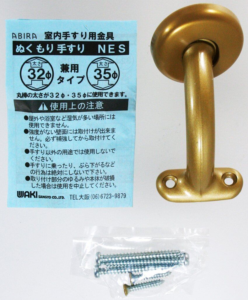 和気産業 ABIRA 室内手すり用金具 壁受 Φ32・35mm用 ゴールド 手摺 階段 玄関 トイレ NES01G