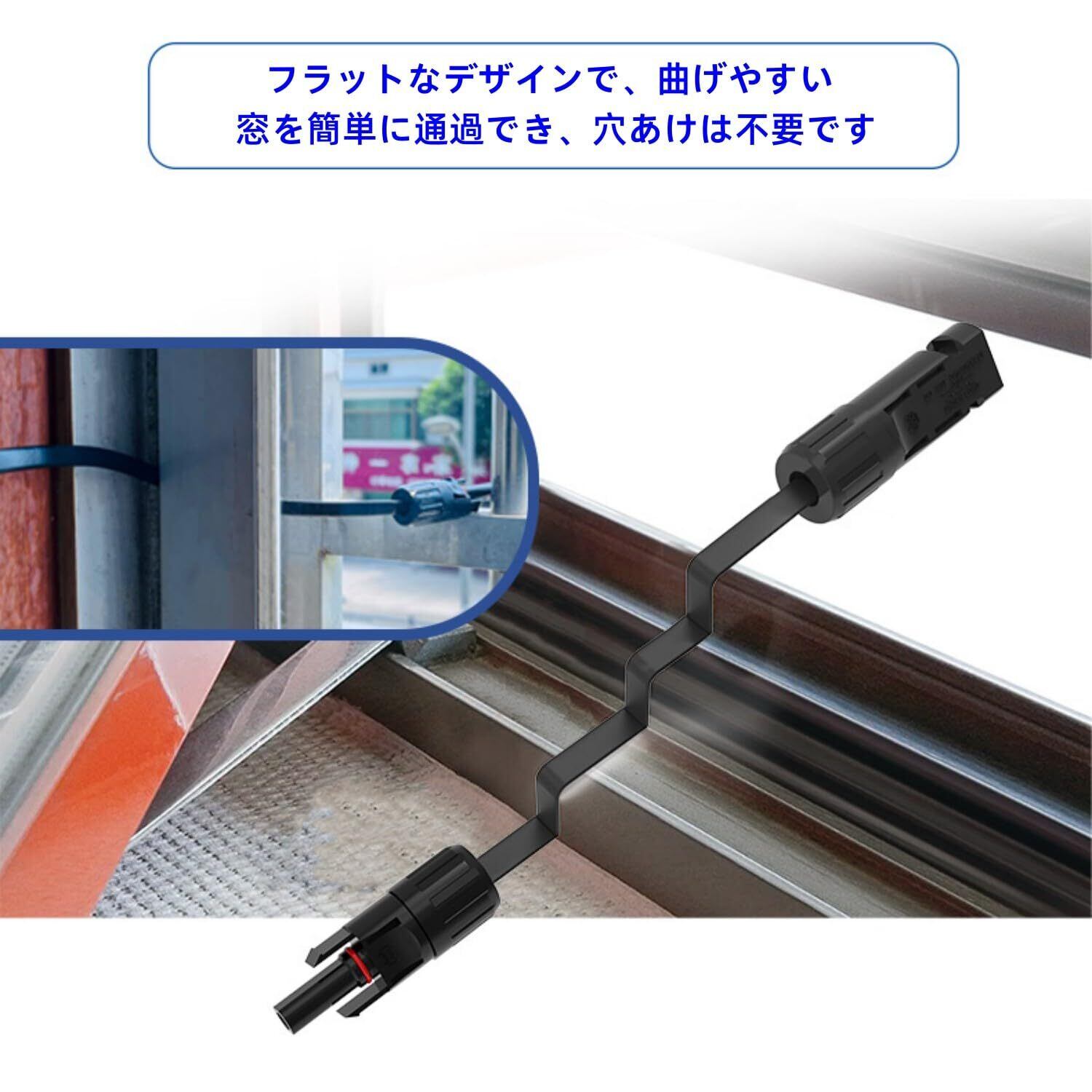 【優れた性能】延長ケーブルの厚さはわずか約 2.4mm です, ソーラーパネル フラットケーブルの大電流・高電圧負荷容量、単芯ケーブル断面積10-14AWG(2.5mm²/4mm²/6mm²)に適しており、IP68防水、ほこり防止、使用温度範囲:-40℃ 〜+90℃、定格電流:30A、定格電圧:DC1500V。