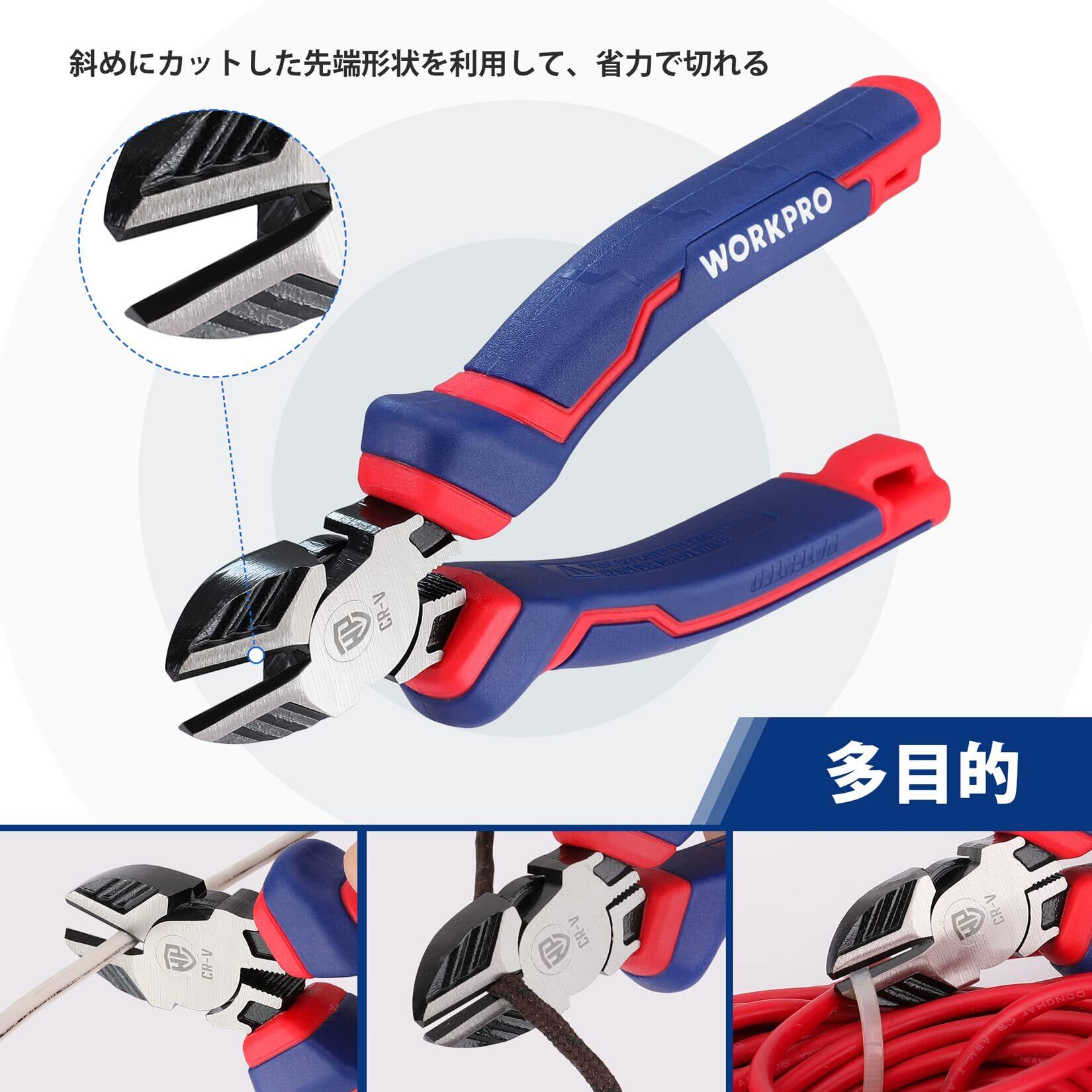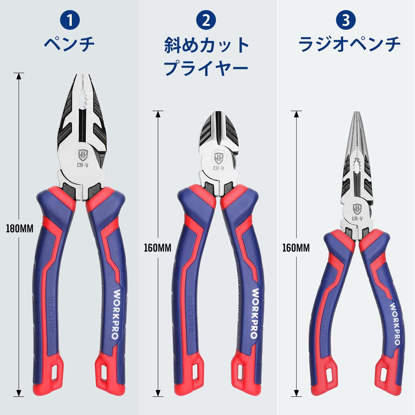 WORKPRO ペンチセット プライヤーセット 3本セット 強力ペンチ ラジオペンチ 斜めカットプライヤー 強力ニッパー 家庭工事 自働車修理 鋼線切断
