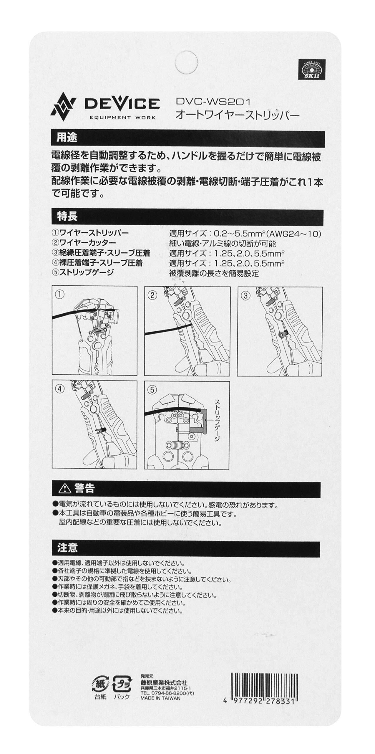 SK11(エスケー11) DEVICE オートワイヤーストリッパー DVC-WS201 電線径自動調節機能付き