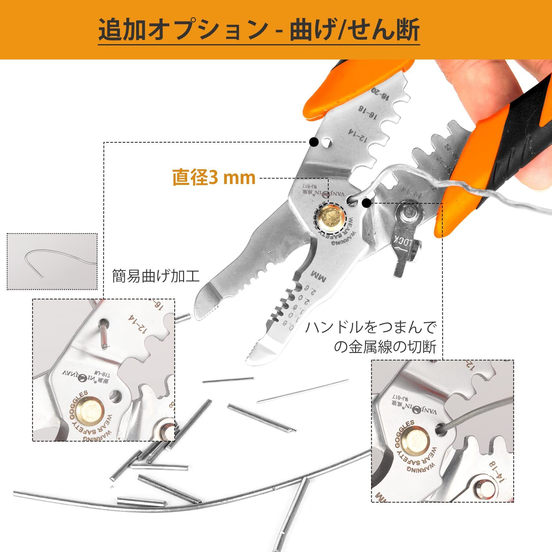 VANJOIN ワイヤーストリッパー/端子圧着ペンチ、多機能ワイヤーストリッパー 電気工事用 電工工具、ステンレス鋼 ストリッパー、ワイヤーストリッパー 工具(187mm)