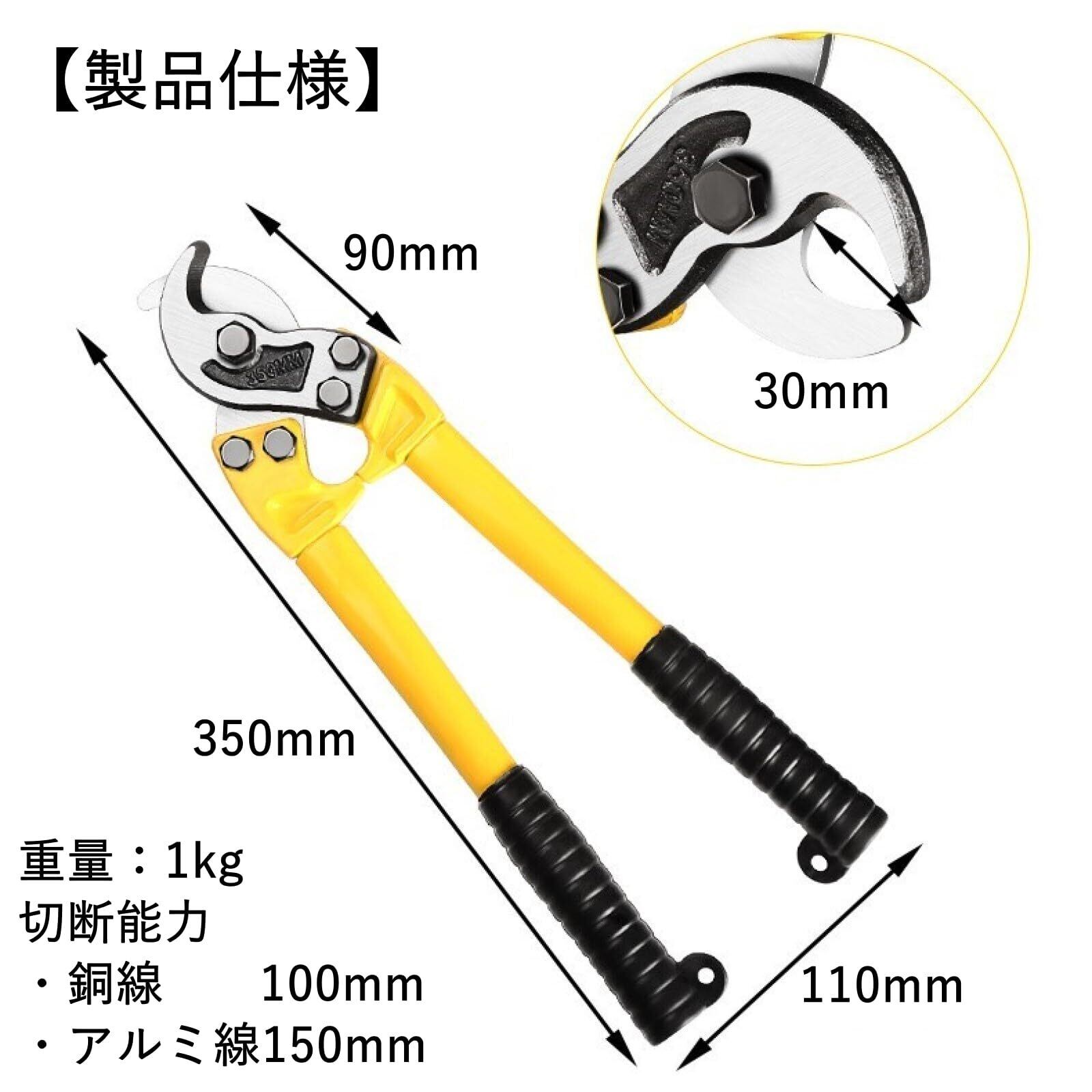 COZENTA ワイヤーカッター ケーブルカッター ワイヤーストリッパー 切断 100sq 35cm