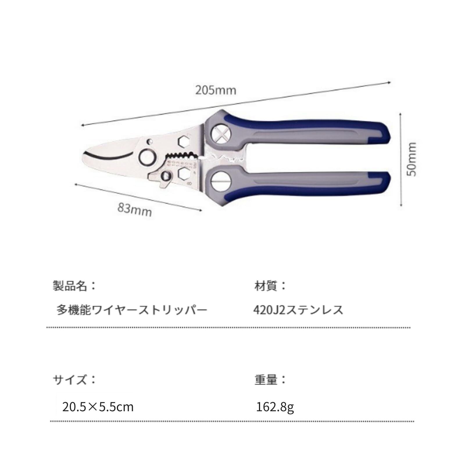 ストリッパー 電工 左利き 共通 ケーブル カッター ワイヤー 強力 多機能 ワイヤーストリッパー ペンチ 圧着 電気工事士技能試験推奨 ケーブル被覆剥き器 (ストリッパー(カッター))
