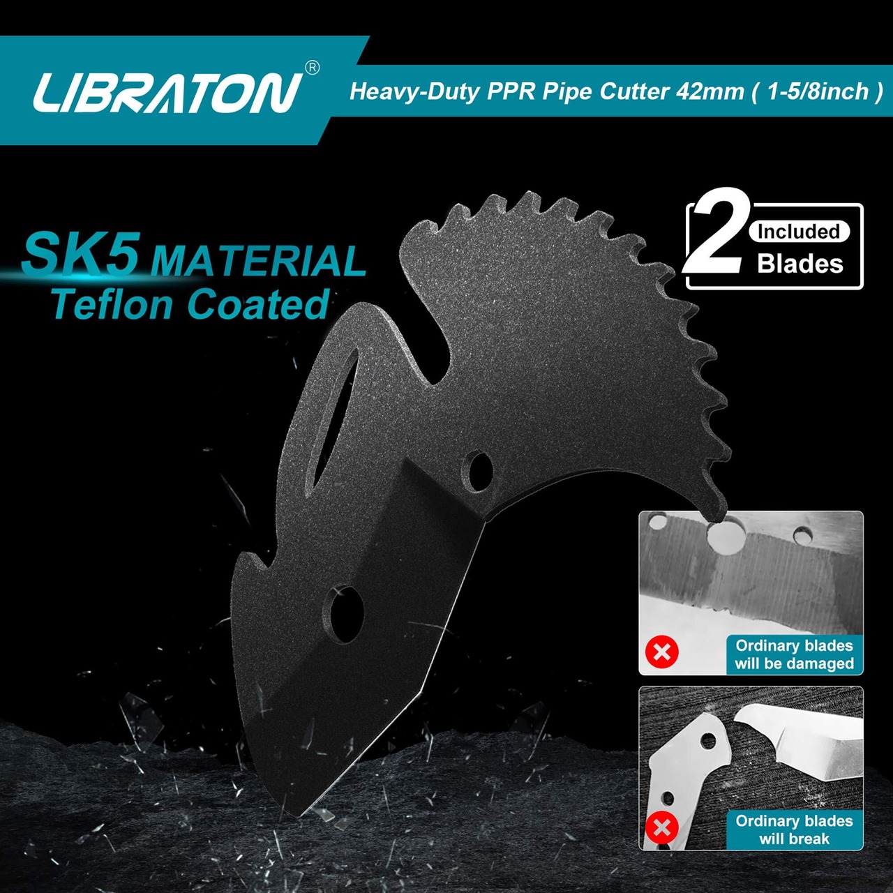 【重切削塩ビカッター】Libraton 塩ビパイプカッター本体は耐久性のある硬度のアルミ合金鋼で作られています。 厚さ2.5mmのブレードはSK5素材を採用、精密な研ぎとテフロンコーティングが施されています。