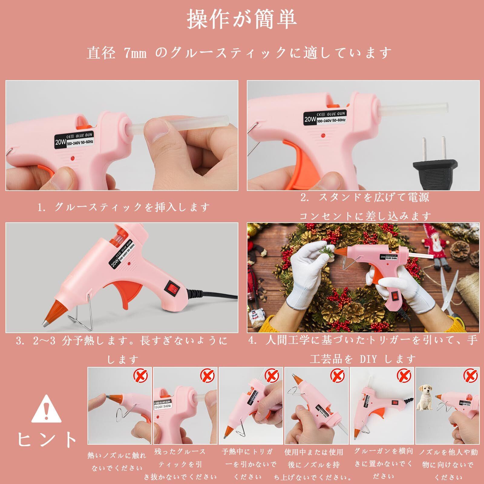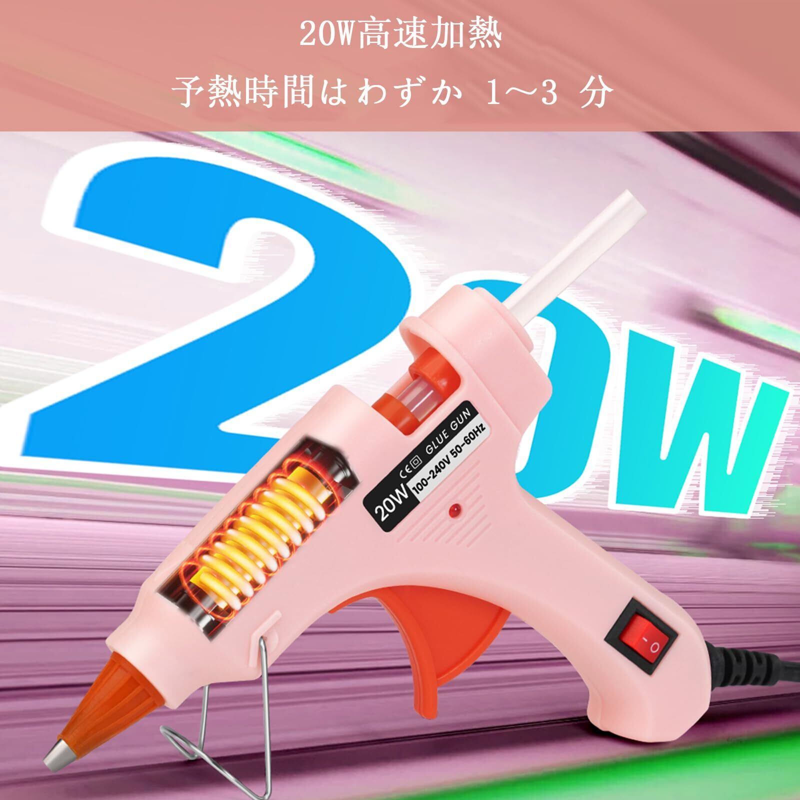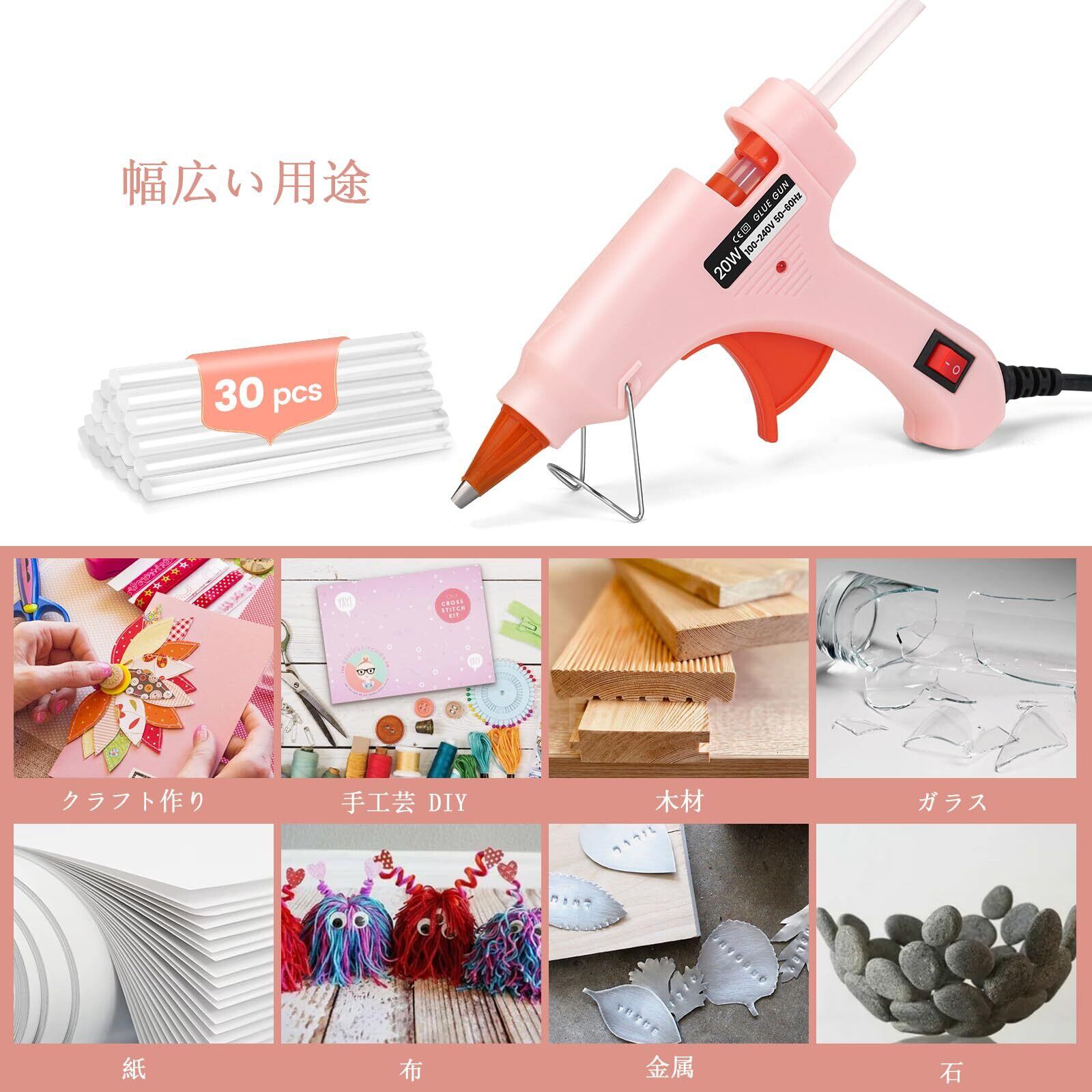 グルーガン 20W 90秒 急速加熱 スティック 30本付 軽量速乾 液漏れ・やけど防止 改良されたスタンド 強力粘着 補修 接着剤 DIY趣味 手芸 木工作業用 (ピンク)