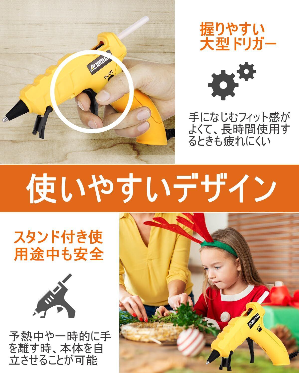Anesty グルーガン 90秒 急速加熱 50W 高温かつ安定 ホビー用グルーガン 垂れない 手元でON・OFF出来 強力 小型 超軽量 手芸 造花の接着 DIY ステック30本付