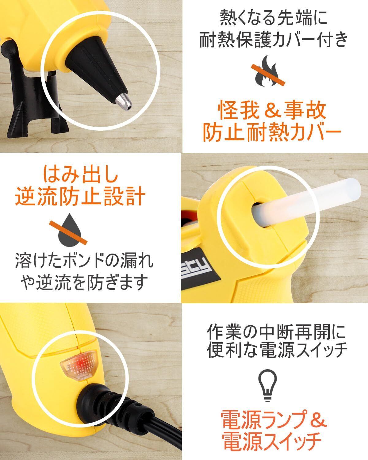 液漏れ防止機能付き:ホットボンドの内部に液漏れ防止機能が設計されており、グルーの漏れや逆流を効果的に防ぐことができます。これにより、作品や作業場所が汚れることなく、無駄なグルーの消費も防止できるし、作業の快適さを最大化に引き出されます。
