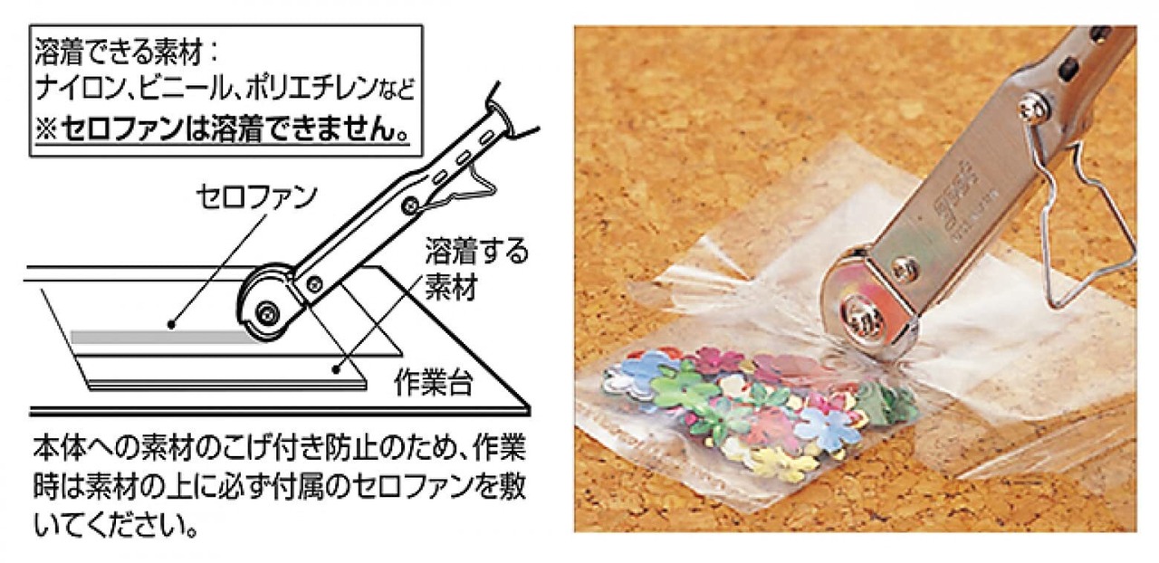 ●ナイロン、ビニール、ポリエチレン、不織布の接着加工に使用できます。