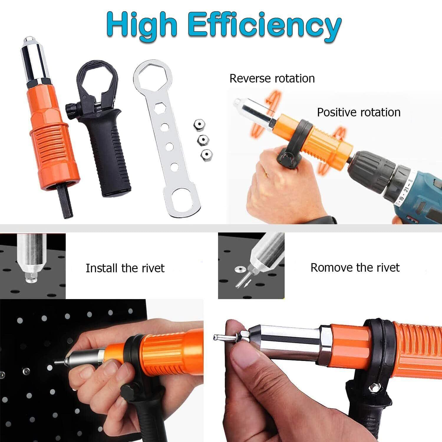 高効率:この電動リベットナットガンアダプターは、手動よりも省力化され、空気圧よりも便利です。低ノイズ、より効率的、小型で持ち運びが簡単です。ホームオフィスに適したヘルパーとは対照的です。
