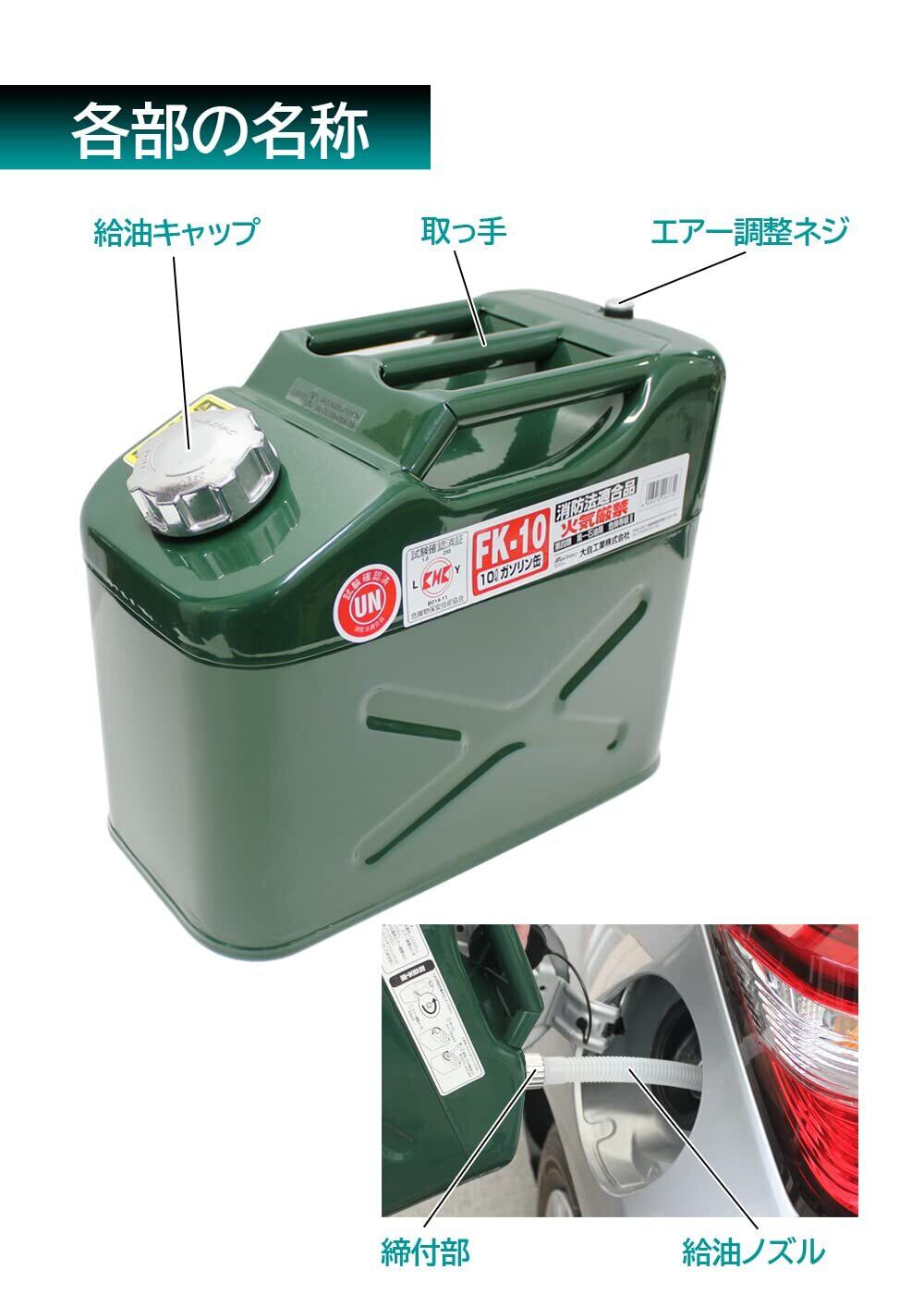 メルテック(meltec) ガソリン携行缶 10L 縦型 消防法適合品 KHK UN 亜鉛メッキ鋼板 鋼鈑厚み0.8mm Meltec FK-10