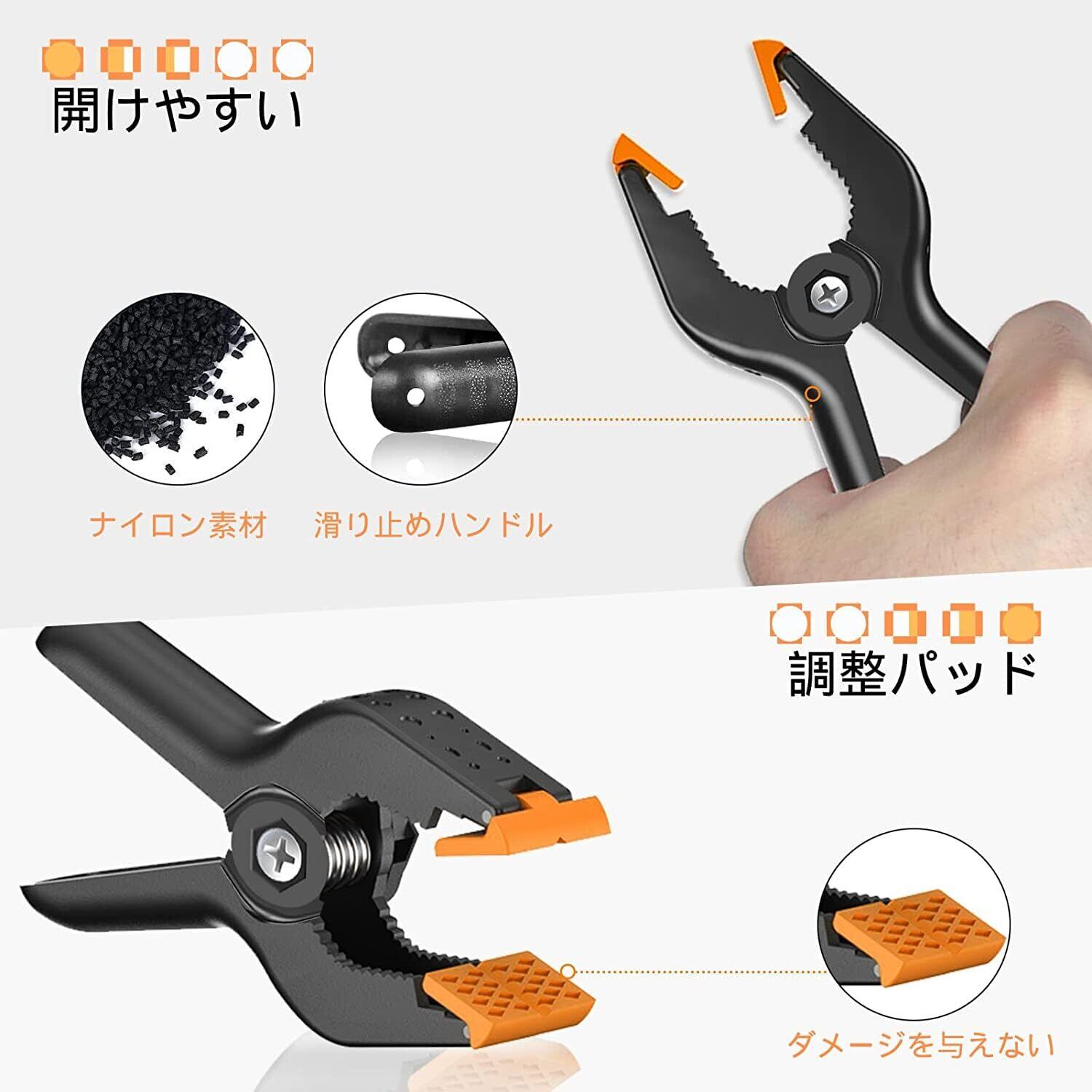 【上質な素材&幅広く用途】高品質なナイロンと金属素材が採用されて、強力だけでなく耐久性にも優れています。スプリングクランプは用途が広く、軽量で使いやすく、一般クラフト、大工道具、モデル作り、ホビー、木工作業、撮影、物干し等の固定作業にも応用できます。