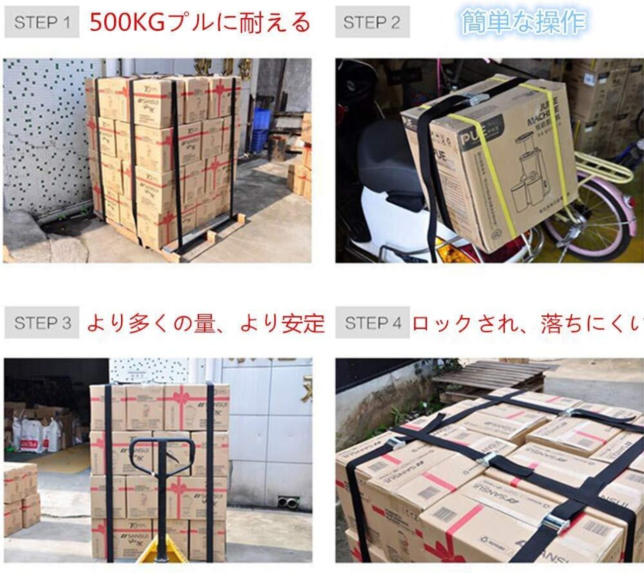 Runbod 荷締めベルト 荷物 固定 ベルト 2m 梱包/自転車/バイク 固定ベルト 幅25mm 8本セット ブラック