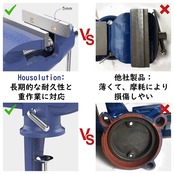 「強靭な鋳鉄とダクタイル製で高い耐久性」強靭鋳鉄とダクタイル(球状黒鉛鋳鉄)を使用して製造されており、耐破損性や耐久性に優れていた頑丈な作りにより、長期間の使用でも高い信頼性を誇ります。特に小型ながらも本格的なバイスとして、力をかけても歪むことなくしっかりと作業対象物を固定できます。