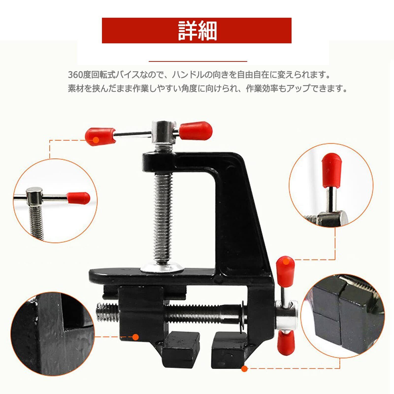 Wolfride 万力 卓上 ミニバイス 小型テーブルクランプ 木工バイス 回転式 ホームバイス アルミ合金製 軽量固定 作業台 ワークベンチ 細かい作業工具 diy