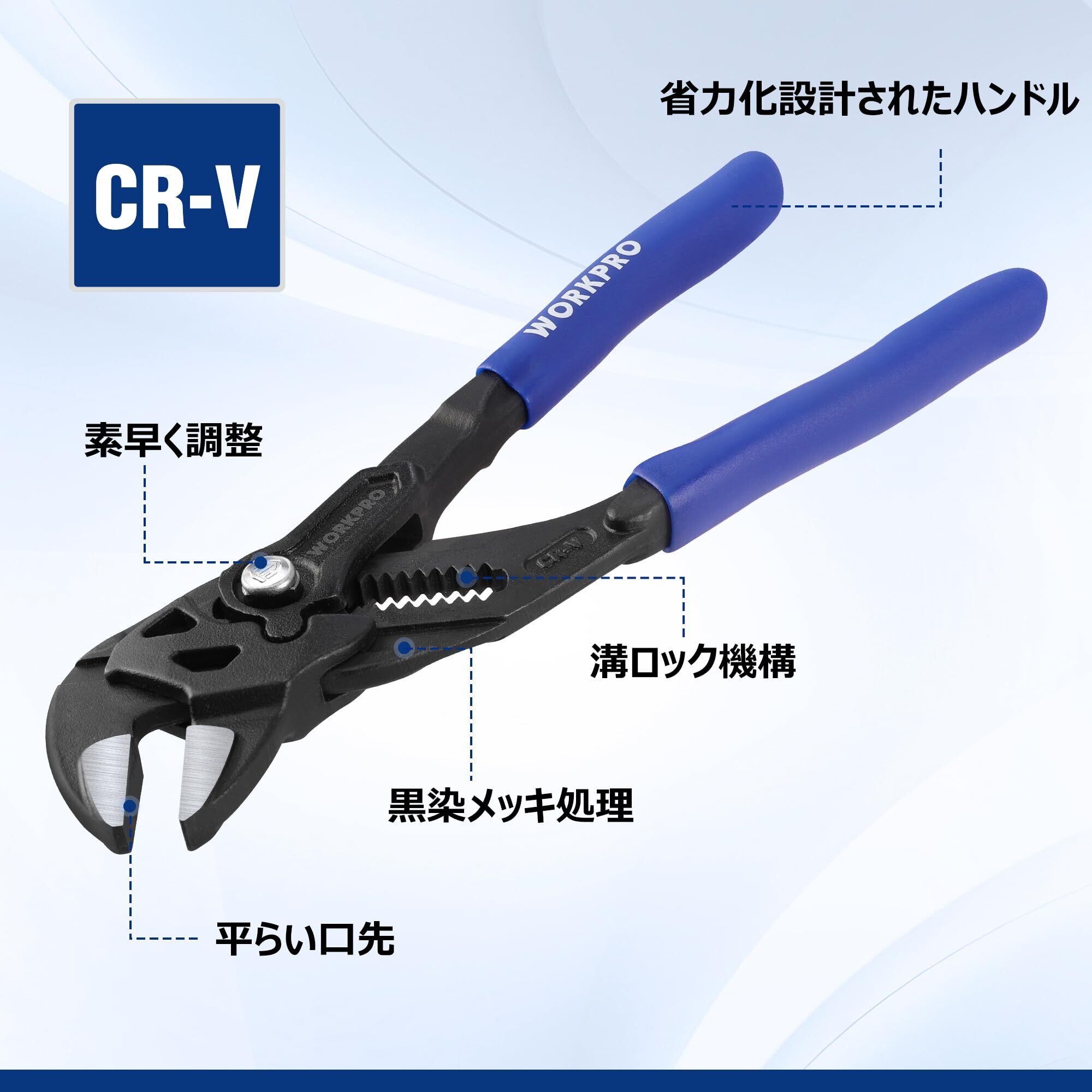 WORKPRO プライヤーレンチ モンキレンチ アジャスタブルレンチ 全長約180mm ペンチレンチ CR-V 建設用レンチプライヤー 最大口開幅 約40mm ブラック仕上げ ロック機構