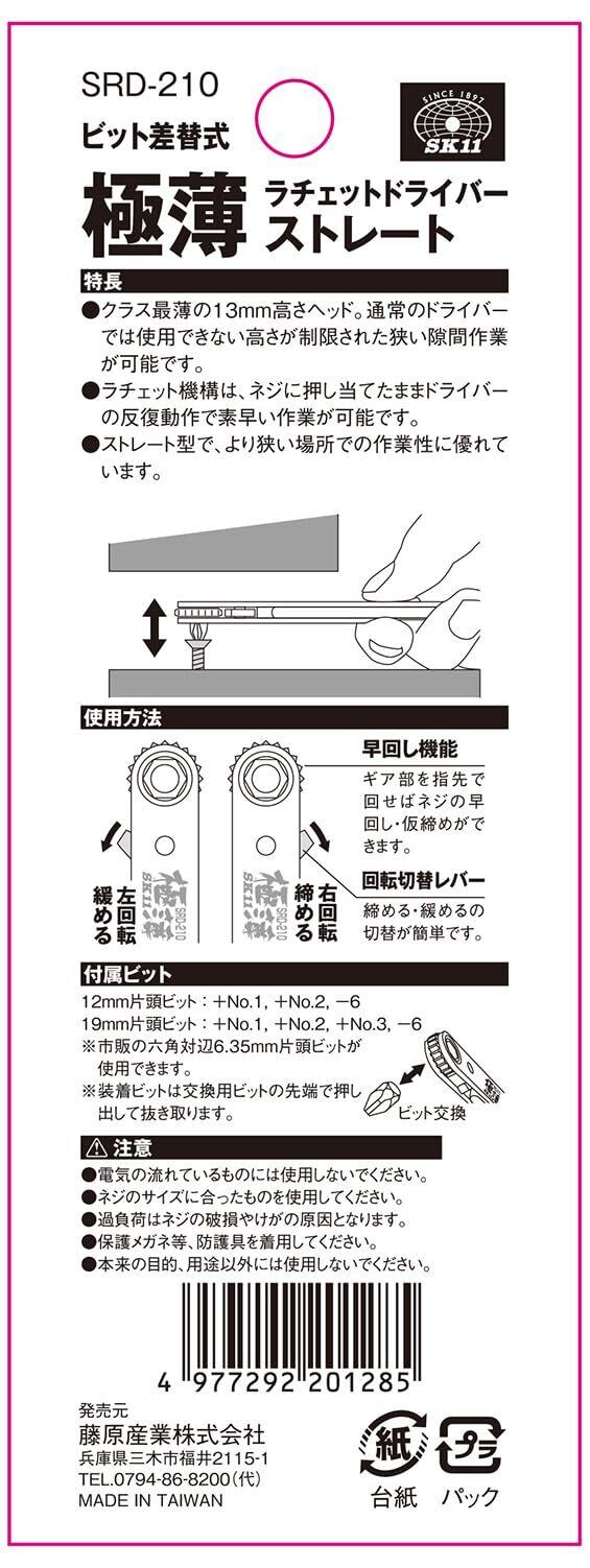 SK11(エスケー11) 極薄ラチェットドライバー ギア数20山 SRD-210