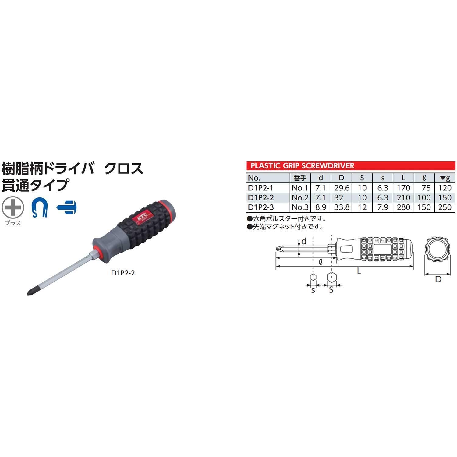 京都機械工具(KTC) 樹脂柄 ドライバー クロス貫通タイプNo.1 D1P21