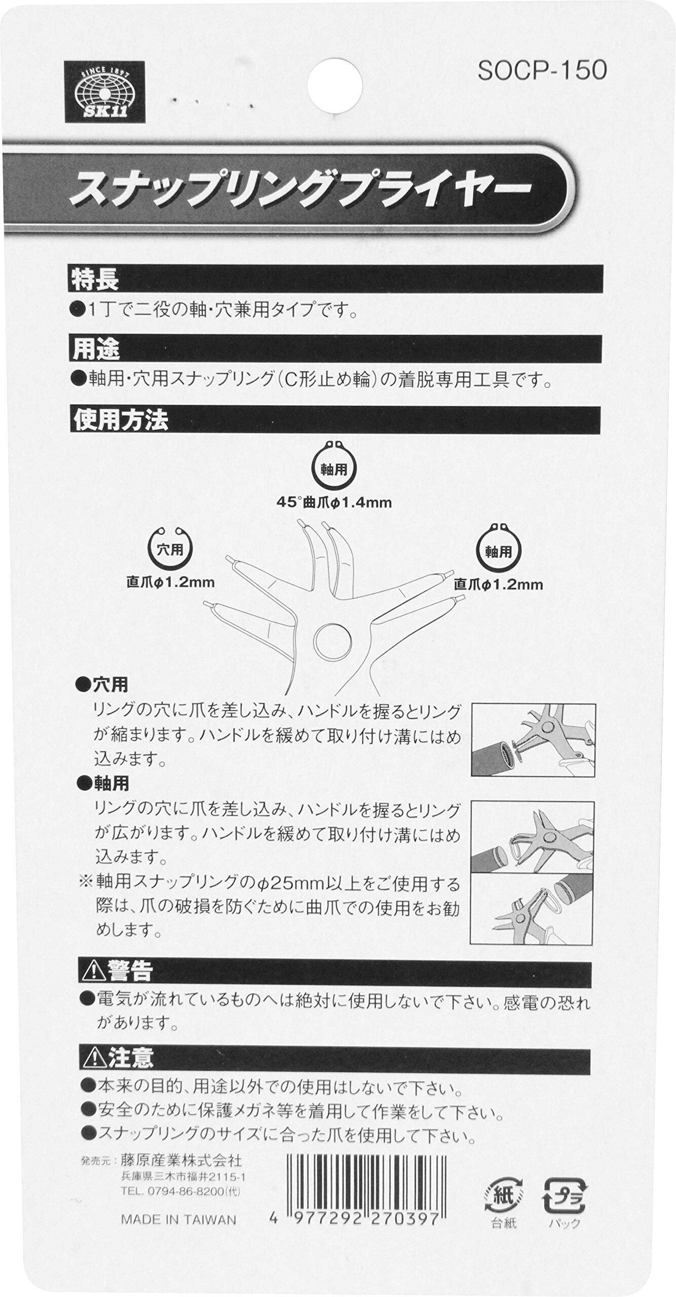 SK11(エスケー11) サークリップ・スナップリングプライヤー 軸穴兼用 径 10~40mm SOCP-150
