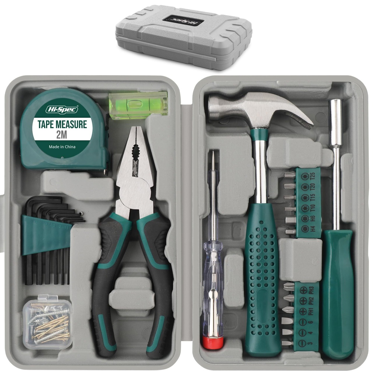 Hi-Spec 25点 工具セット 家庭用 DIY 工具 ホームツールセット ミニ 作業工具セット ハンマー・ドライバー付き 車・バイク 修理に最適 便利工具箱 初心者向け ベーシック ツールキット グリーン | Bloomia