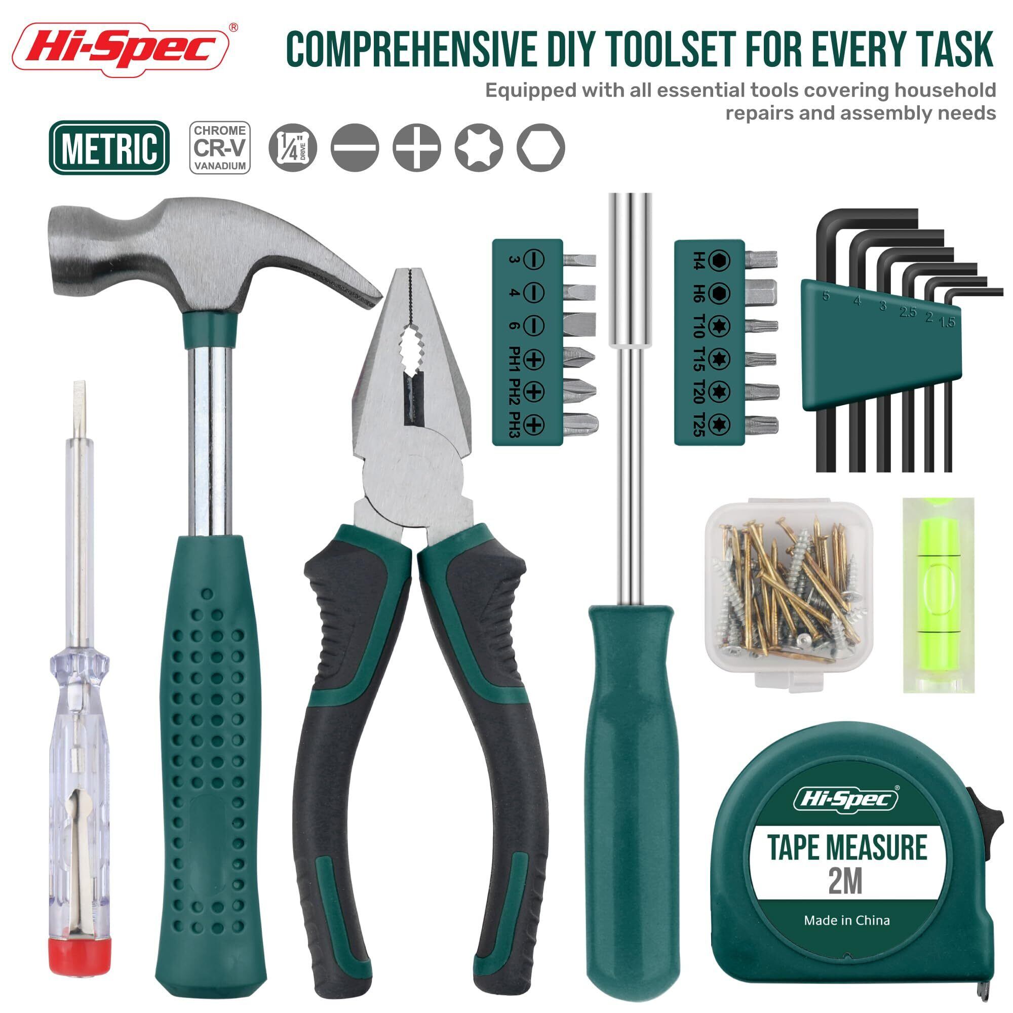 Hi-Spec 25点 工具セット 家庭用 DIY 工具 ホームツールセット ミニ 作業工具セット ハンマー・ドライバー付き 車・バイク 修理に最適 便利工具箱 初心者向け ベーシック ツールキット グリーン