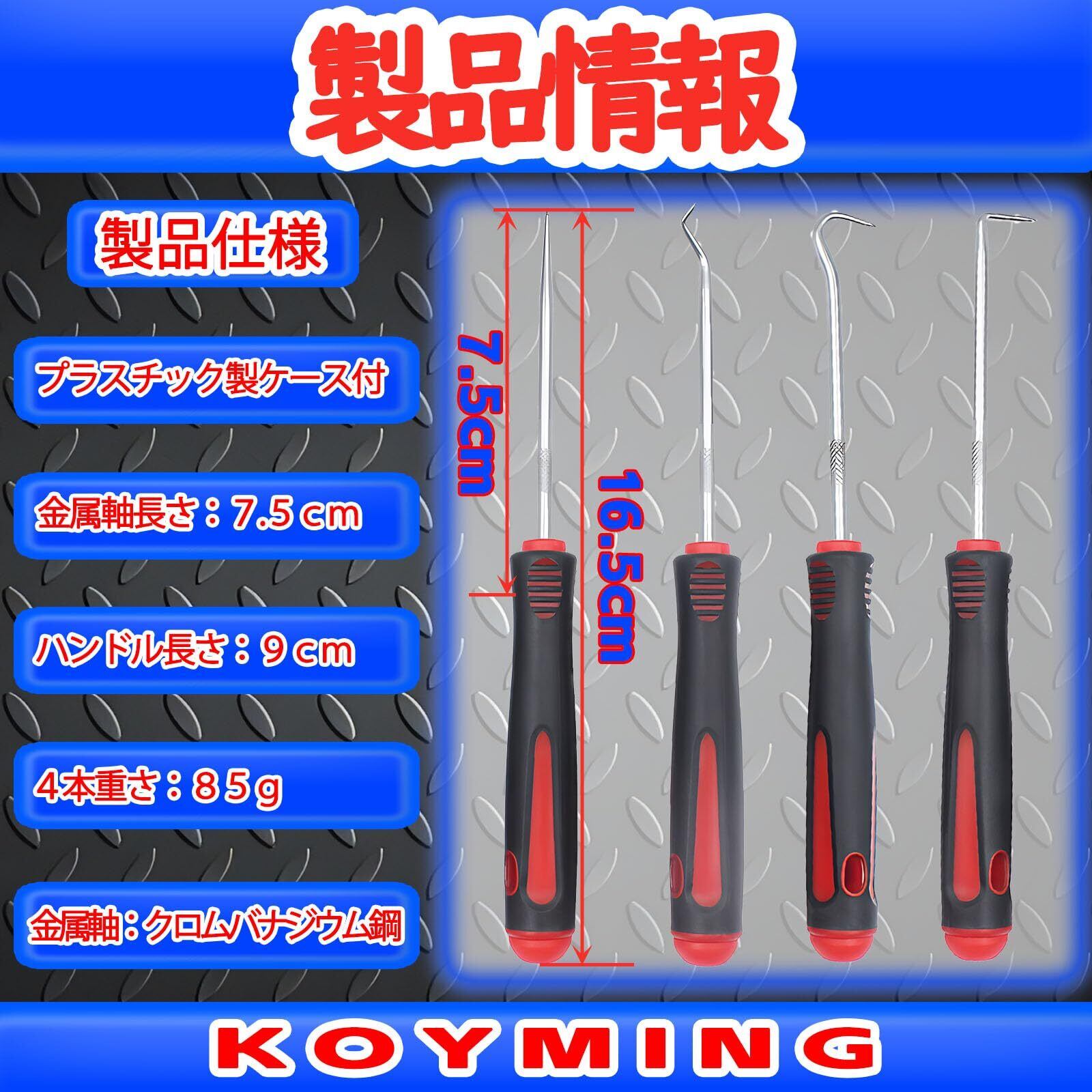 KOYMING Oリングオイルシールピックツールセット フックセット 【収納ケース付き】 オイルシールリムーバー ピックアップツール ピック&フックセット 4本組
