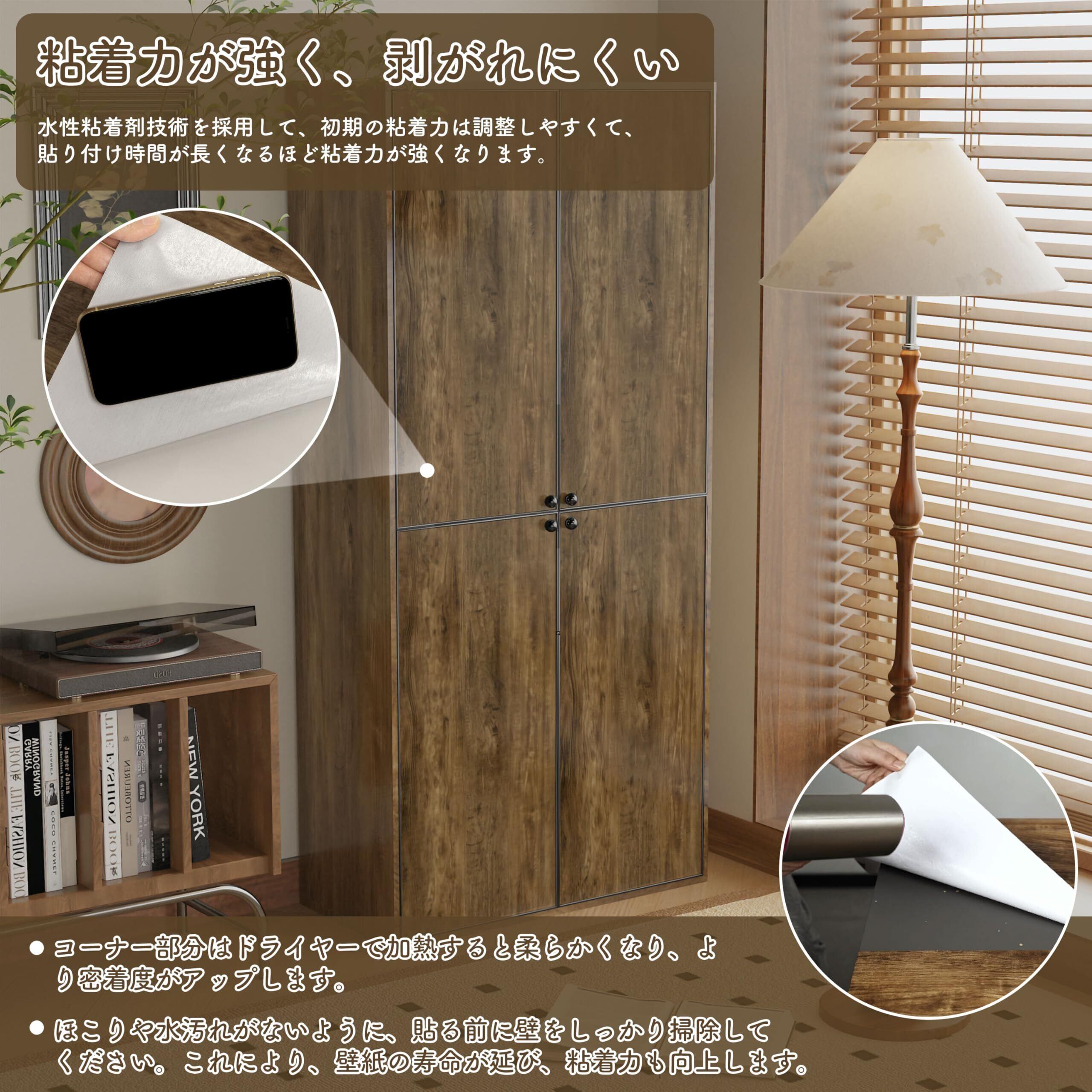 高品質素材:1.耐スクラッチ、耐摩耗性に優れた不浸透性基材を使用します。家具の元の色をしっかりカバーします。汚れが目立ちにくいのが特徴です。 2.水性接着剤採用で、色あせ、臭いなし。貼り付ける時間が長くなるほど接着力が強くなり、剥がれにくい設計です。壁紙を貼る際の注意点:ほこりや水汚れがないように、貼る前に壁をしっかり掃除してください。これにより、壁紙の寿命が延び、接着力も向上します