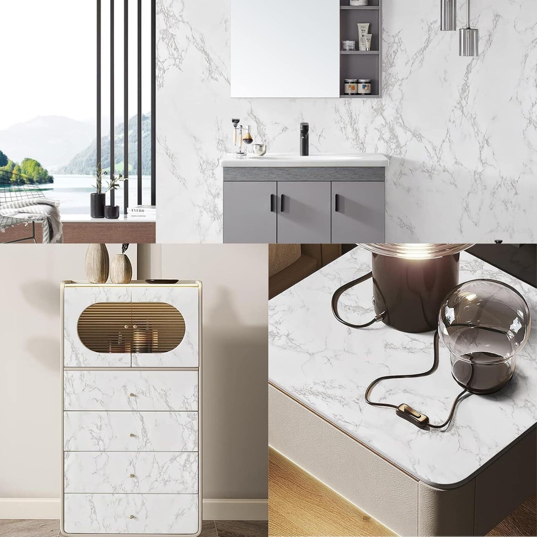 【商品仕様】素材:高品質PVC/大理石柄/光沢 ツヤあり/白・グレー/サイズ:40cm×300cm/1.2平方メートル/厚み:約0.27mm(厚手) 【特徴】防水・防湿・防カビ、よりシワ・気泡が入りにくい、下地が透けることもなく、耐摩耗性や耐久性にも優れています。掃除はサッとひと拭き、床に貼れば床掃除も楽ちんです。