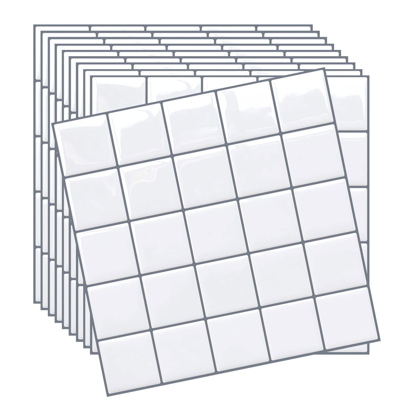 【売れ筋】MORCART タイルシール キッチン 耐熱 防水 洗面所 トイレ DIY 家具やアイテムの装飾 タイルシート 壁紙シール 3D リメイクシート (25x25cm, 10枚, スクエア・ホワイト×グレー) | Bloomia