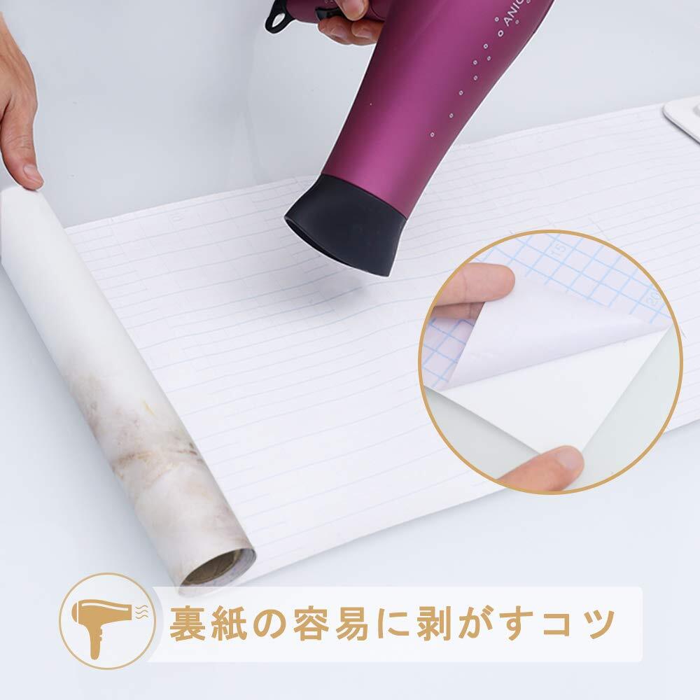 【簡単貼り付け&賃貸OK】裏紙を剥がして貼るだけ!貼り道具を持っていない初心者でも綺麗に貼れます。貼ってはがせるシールタイプなので、剥がした時も糊残らず、賃貸住宅でもお手軽に利用できます。※貼る面の素材によって、貼る面にのりが残る場合があります。原状復帰が求められる賃貸住宅でのご利用は十分ご注意ください。【用途】お部屋の壁、キッチン、浴室、トイレ、家具、テーブル、扉、古くなった家具の再生、小物のdiyやアクセサリの撮影用など様々な場所に活用!水や汚れを心配せず、ご家庭やオフィスの所々もアレンジできます。