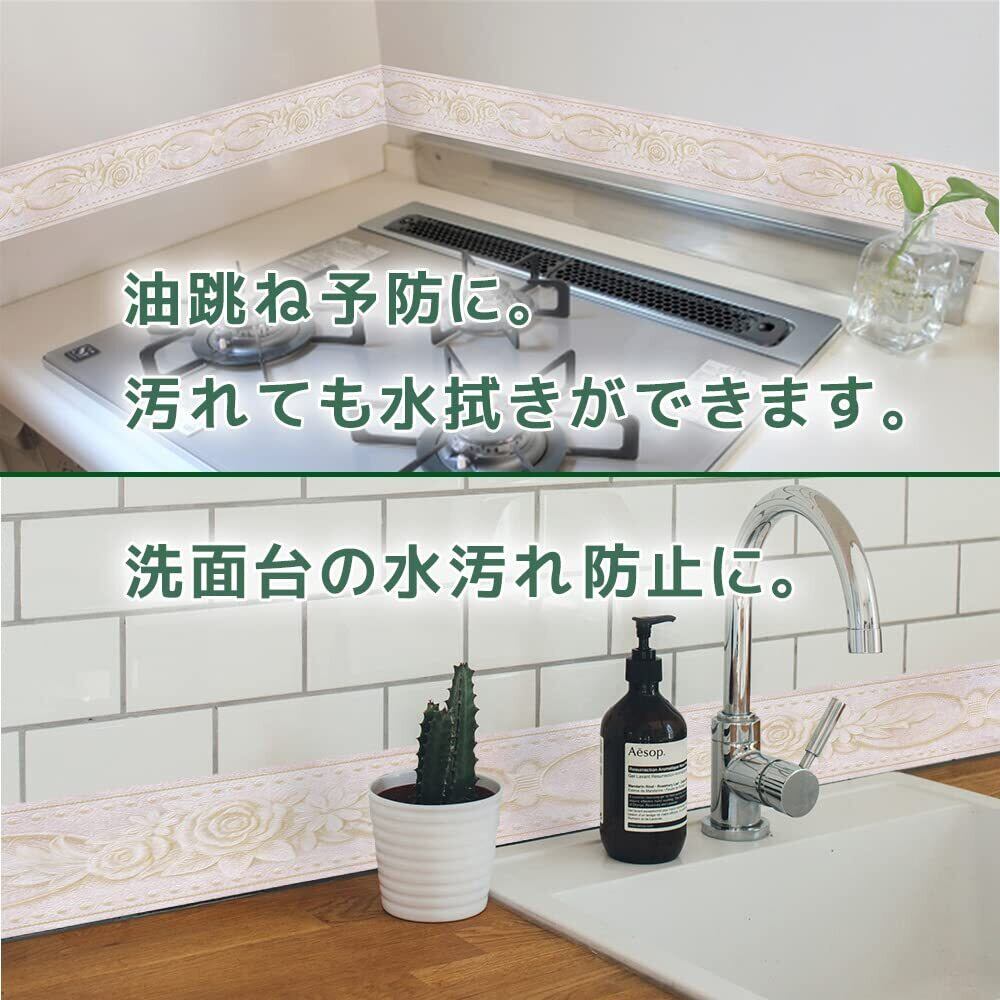 【SRrabbit】手軽にDIY! おしゃれな 薔薇柄 トリムボーダー はがせる 壁紙シール リメイクシート マスキングテープ 防水 補修 ウォールステッカー 10.5㎝ × 5m(パステルグリーン)