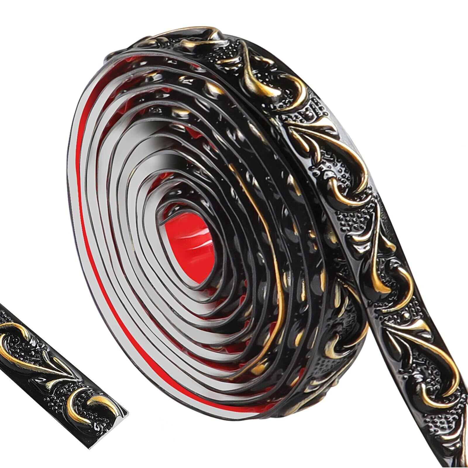 300 cm フレキシブルトリムボーダー - 自己接着性PVCストリップ装飾、防水ボーダーシールの3Dビンテージパターン、家の装飾のための粘着壁ボーダーストリップ(ブラック&ゴールド-2cm)