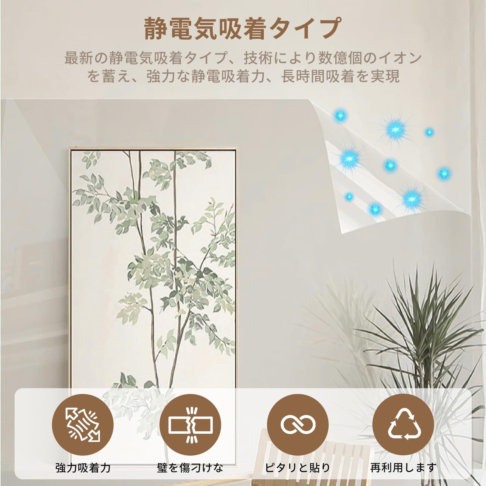 【強力静電気吸着、壁を傷つけない】最新改良版の静電気吸着タイプ、技術により数億個のイオンを蓄え、強力な静電吸着力、長時間吸着を実現。不要になったときに簡単に外せます。壁を傷つけません、糊残り無し、長い耐久性、適度な厚みで長時間に使用させられます。