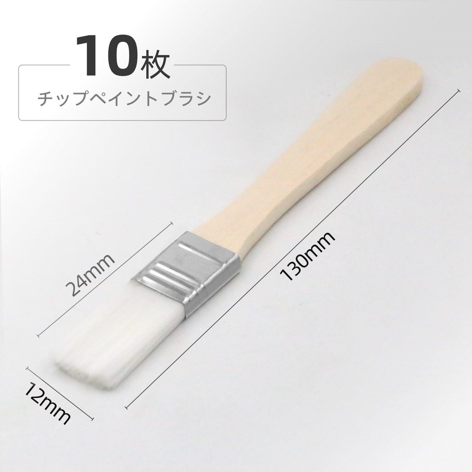 チップペイントブラシ ペイントブラシ 木製ハンドル付き 絵筆 平筆 ペイントツール 画材筆 家具 柵用 壁 ドア 絵の具 12 mm幅(10個入 ホワイト)