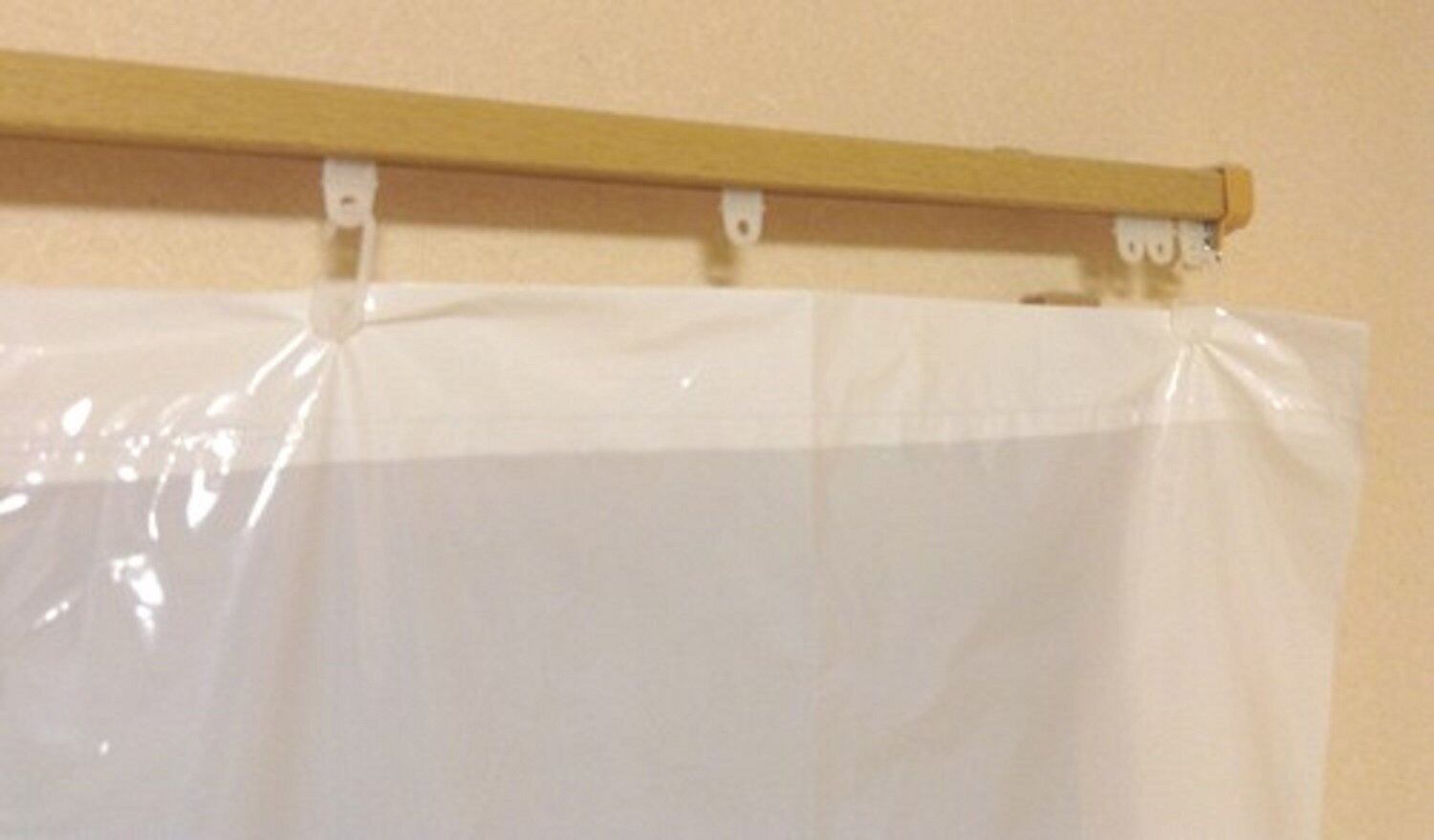 プラスチックの吊りかんが約35cm間隔で6か所に取り付けてあり、カーテンレールのランナーに引っ掛けるタイプです。