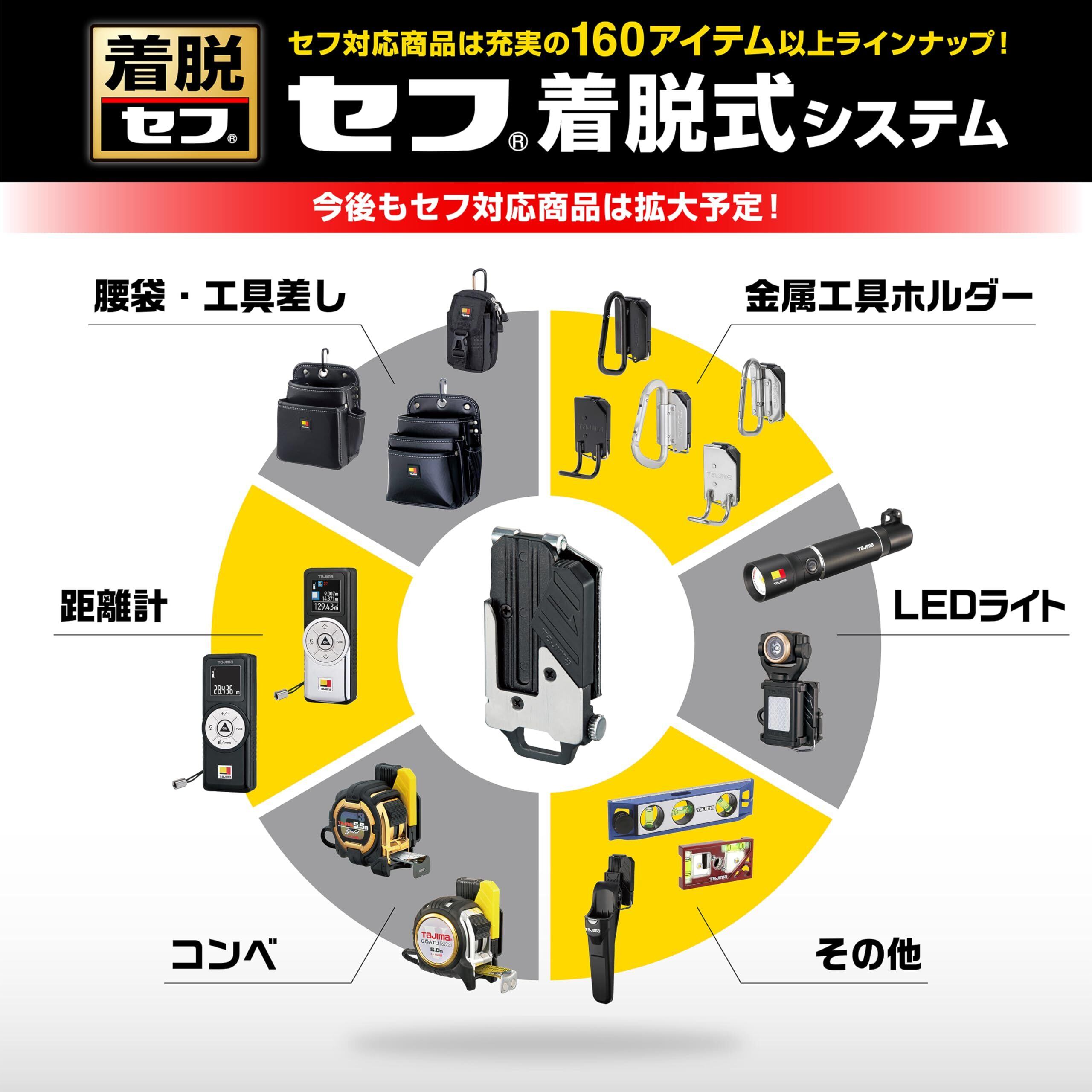 タジマ セフシステム セフ後付ホルダー 上下2連 腰周りの省スペース化 道具が取りやすく動きやすい可動式連結 SF-CHLDS2M 着脱楽々 ベルトに後から装着可能 腰道具の組み換えが簡単 使う道具だけを選んで装着 腰の負担軽減 工具の落下防止