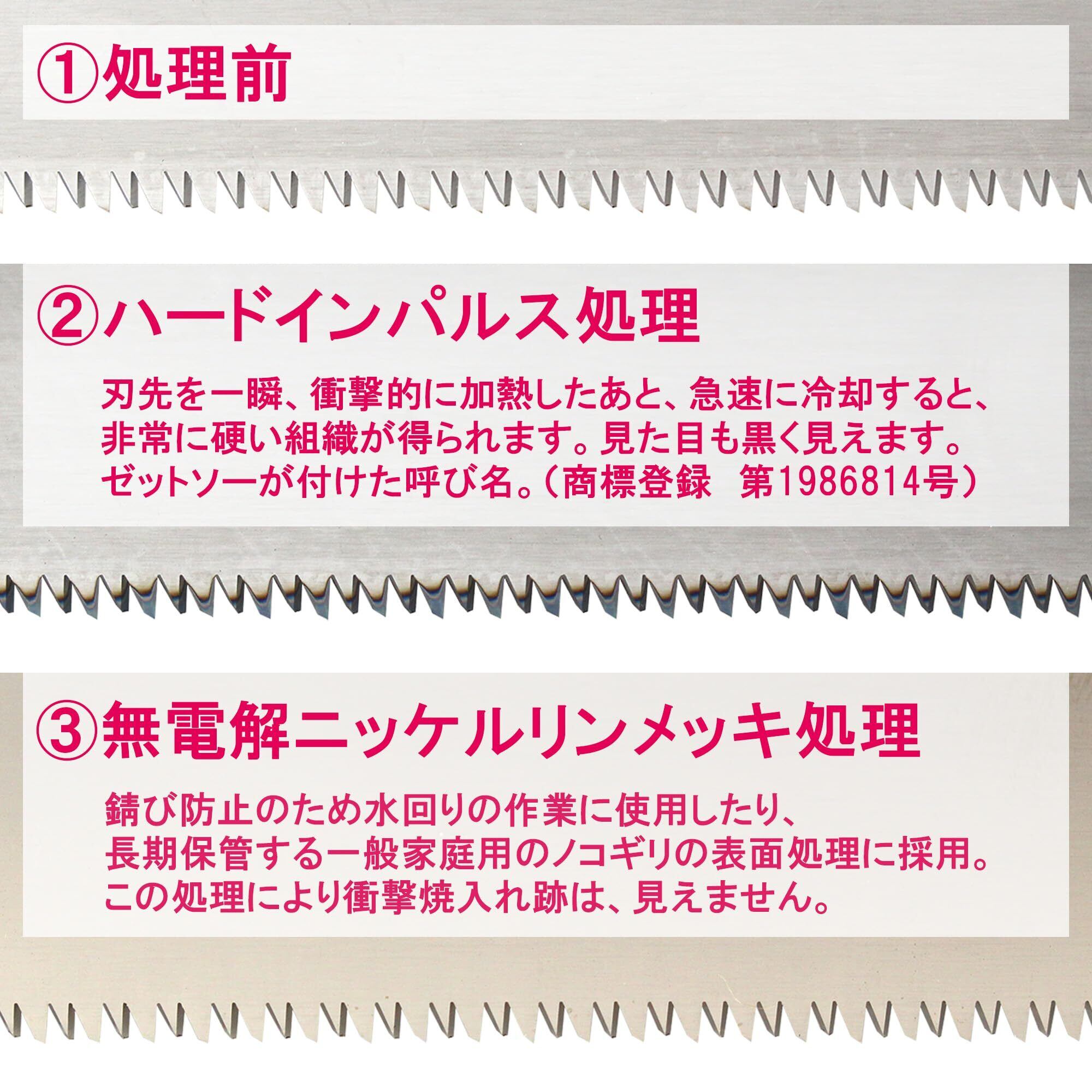 ●刃にアサリが無いため、板面に傷が付かず埋木だけを切断できます。●埋木の切断・凸部の切断用ノコギリ。●ライフシリーズの替刃が使用できます。●刃先に衝撃焼入れを施しており、靭性・耐久性に優れています。●替刃の着脱はネジ式のため、安全で簡単です。●目的によって替刃は逆方向(背と刃が逆)にも取り付けられるため便利です。●収納に便利なパッケージケース付です。