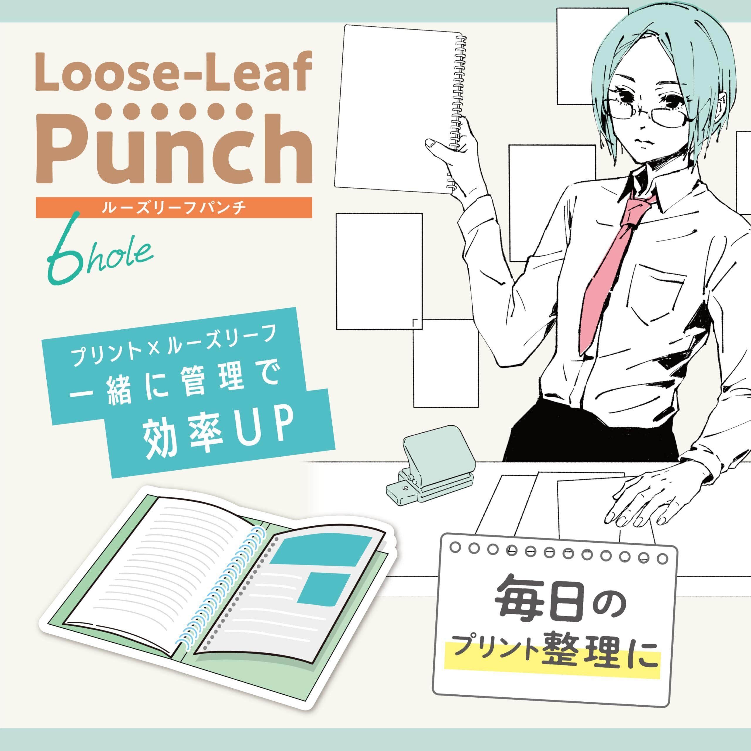 プリントとルーズリーフを一緒のファイルで管理、まとめたい派の人へ。一緒に管理で整理効率がUP 6穴のパンチをガイドを使って正確にずらして穴をあけていけるので、簡単にプリントのルーズリーフ化が出来ます。 【時短使用】A4用紙を折りたたむことで、3回パンチで30穴のルーズリーフが作れます。 【通常使用】A4用紙を折らずに、5回パンチで30穴のルーズリーフが作れます。 A5(20穴)、B5(26穴)、A4(30穴)用紙に対応。最大穴あけ枚数は5枚まで(2つ折り時は2枚まで)です。 紙にかかる負荷の集中を6穴で分散し、紙破れ問題を解決します。 パンチ本体のハンドル部分はロックすることで小さくコンパクトに収納できます。 ダストカバー付で抜きカスをまとめて捨てられます。