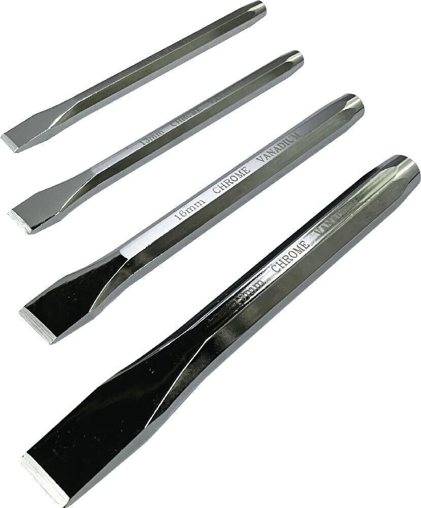 美しいミラーメッキ仕上げのチゼル4本セット。