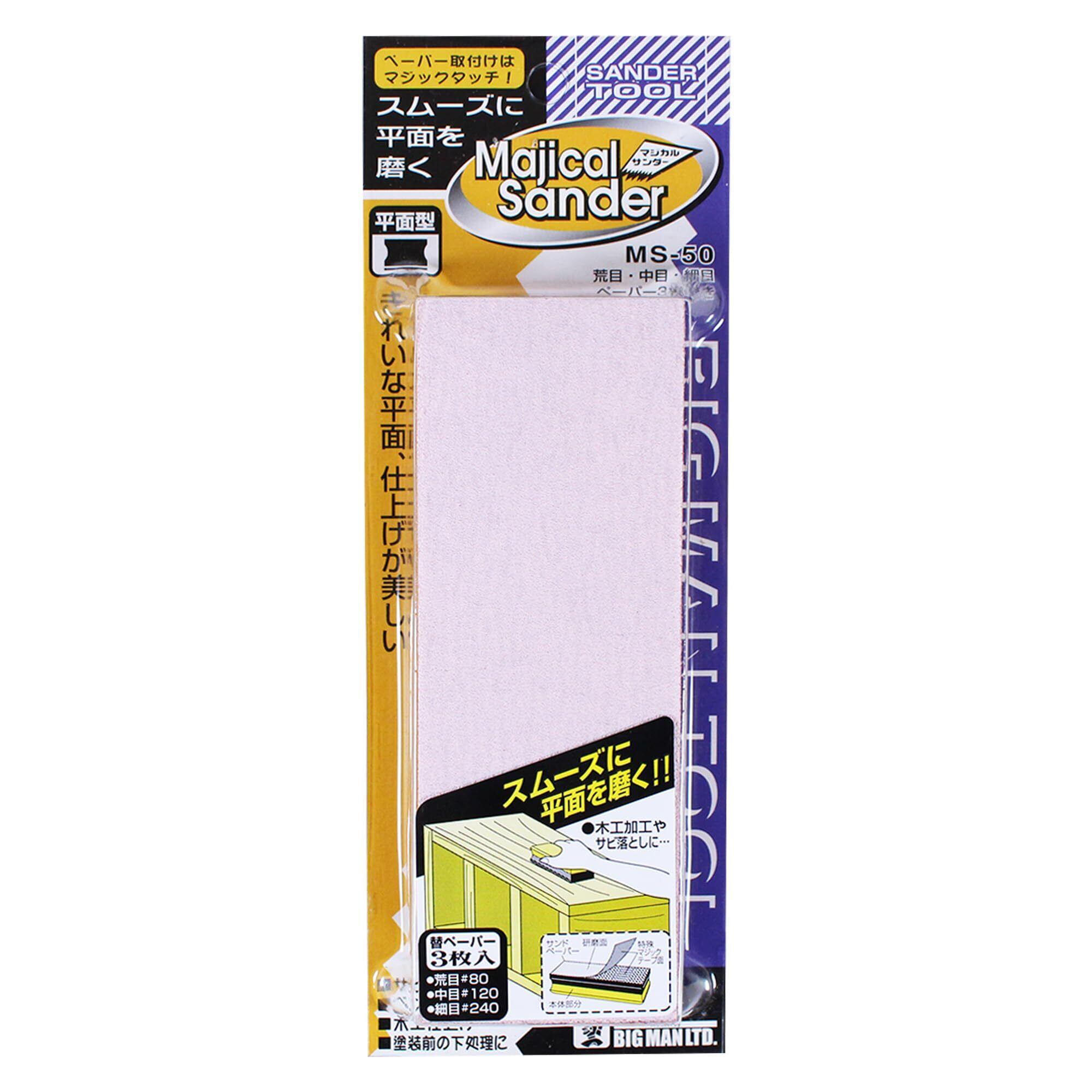 ビッグマン(Bigman) 日本製 マジックテープ式 平面型紙ヤスリホルダーセット 紙ヤスリ #80#120#240 各1枚入り 紙やすり サンドペーパー 研磨 セット MS-50