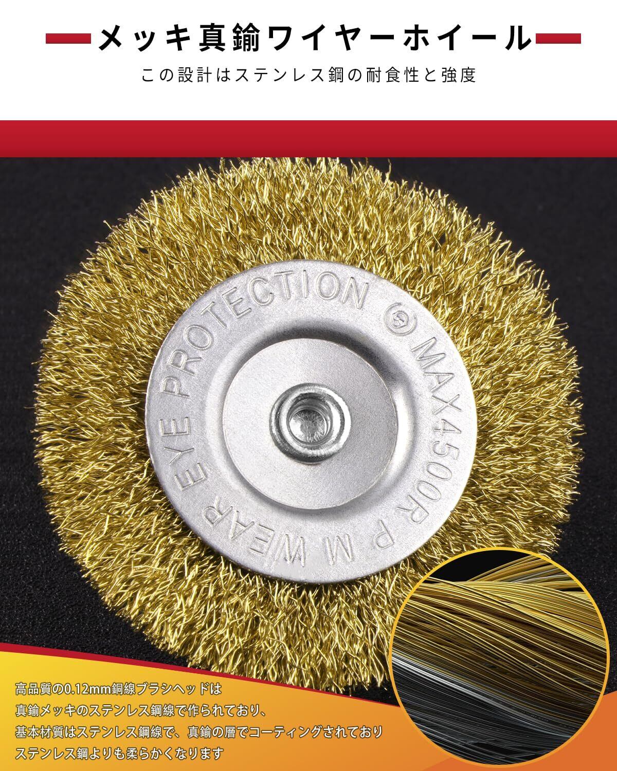 【なかなかしっかり作られてます】高品質の0.12mm銅線ブラシヘッドは真鍮メッキのステンレス鋼線で作られており、基本材質はステンレス鋼線で、真鍮の層でコーティングされており;ワイヤーの物と比べ1本1本が細く柔らかめの為必要以上にキズが入りにくく滑らかにしやすい点があり上から錆止めや塗料を塗った後目立ちにくい点などあり自分はいつも