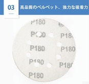 3.【背面タイプ】直径125mm/8穴タイプのペーパーに対応。背面は高品質なフランネル材質を採用しております。粘着性が優れて、目詰りが少なくロングライフ、取り付け簡単。とても便利に取り外しや交換することができます。
