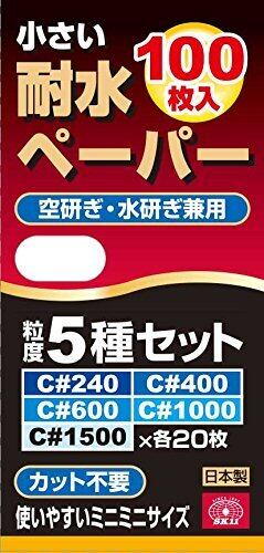 SK11(エスケー11) 小さい耐水ペーパー 約32×70mm 5種×各20枚 C#240/#400/#600/#1000/#1500 100入 空研ぎ・水研ぎ兼用タイプ