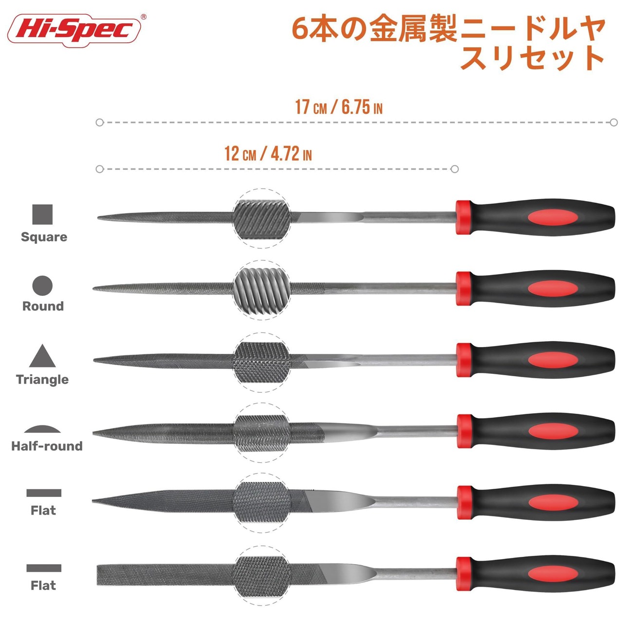 Hi-Spec 6点 ヤスリ 金属 ニードル ハンドヤスリ セット ツールキット 平、半丸、丸、三角 研磨 やすり 鉄工、木工用 大型スチールヤスリ