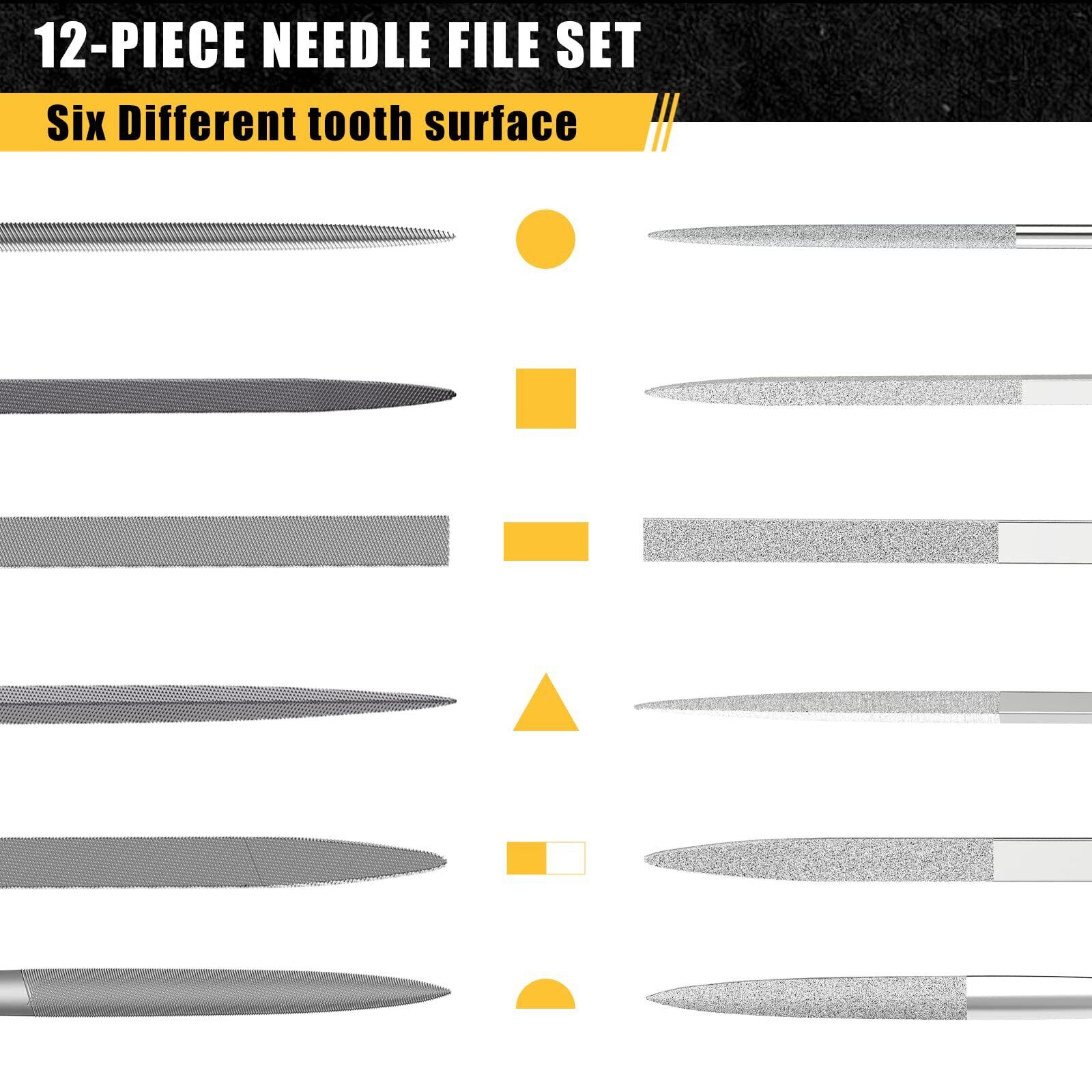 TARIST 12本組 ヤスリセット 収納袋付き 鉄工ヤスリ ダイヤモンドヤスリ 平 丸 半丸 三角 角 平(槍型) 精密 研削 バリ取り DIY 金属、ジュエリー、木材、レザー、プラスチック用 4*160mm | Bloomia