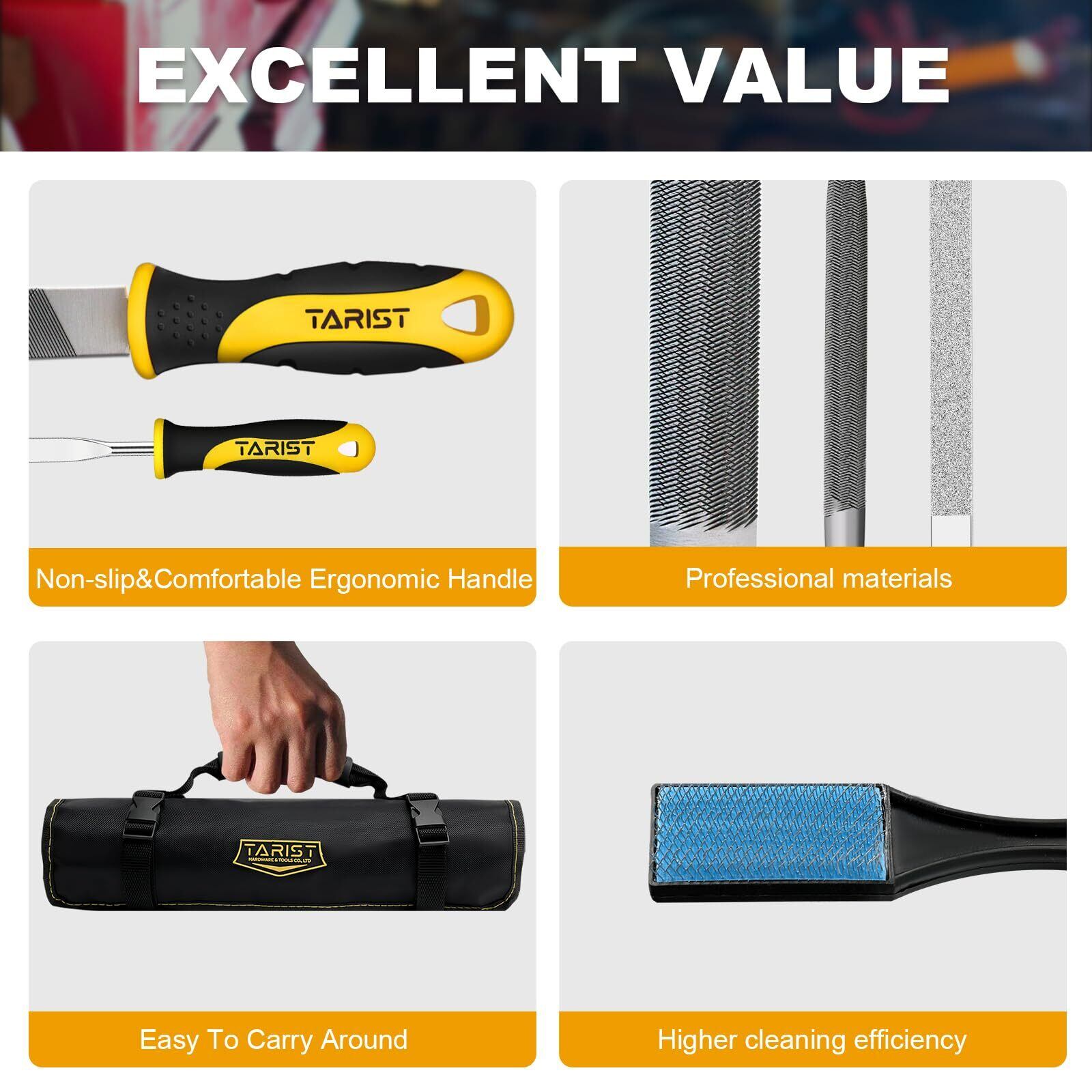 TARIST 19本組 ヤスリセット 様々な場面で活躍 研削 バリ取り 精密 荒削り DIY 平 丸 半丸 三角 鉄工ヤスリ 木工ヤスリ ダイヤモンドヤスリ ブラシ付き 収納袋付き